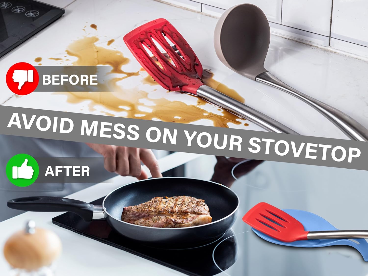 - EASY TO USE, EVEN EASIER TO CLEAN – Food residues and liquids slide off the non-stick silicone surface of our silicone spoon rest for kitchen counter in mere seconds. Simply rinse or wipe for quick cleanup (NO SCRUBBING NEEDED), or place in the dishwasher for a thorough cleaning (DISHWASHER SAFE).