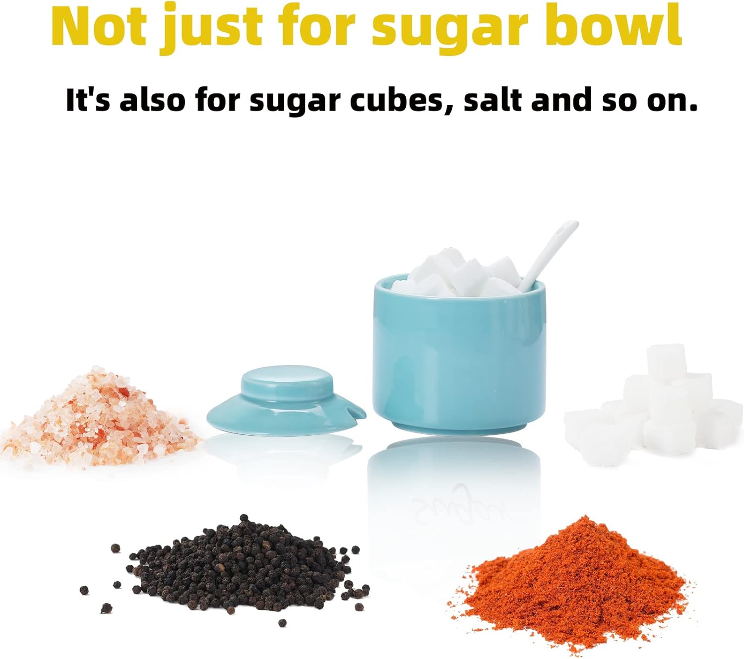 ONTUBE Ceramic Sugar Bowl with Lid and Spoon,Porcelain Seasoning Box Salt Bowl,8oz (Turquoise Blue)