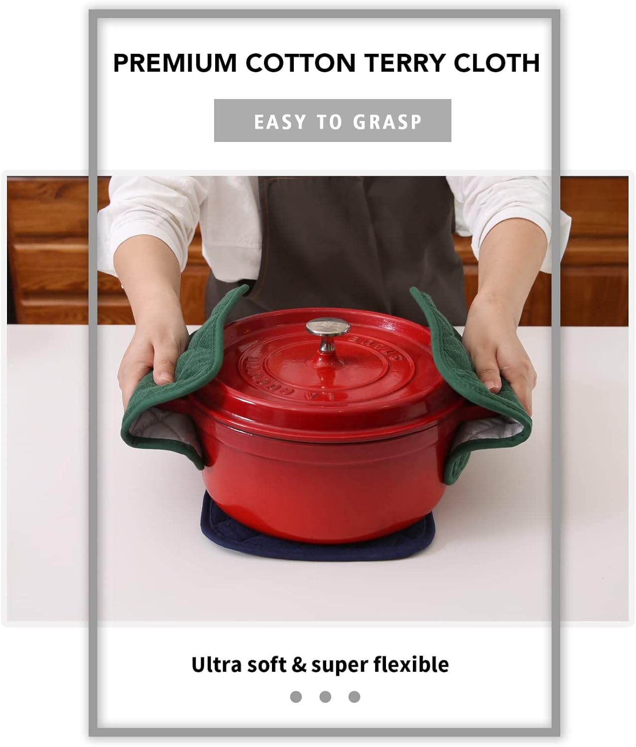 - DURABLE AND FIRM GRIP - The flexible material allows for ease of use and firm grip on the hot dish or pot, adding safety to the cooking process.Fashionable, practical and safe to use in the kitchen as potholder or trivets. Perfect for indoor or outdoor usage all year round!
