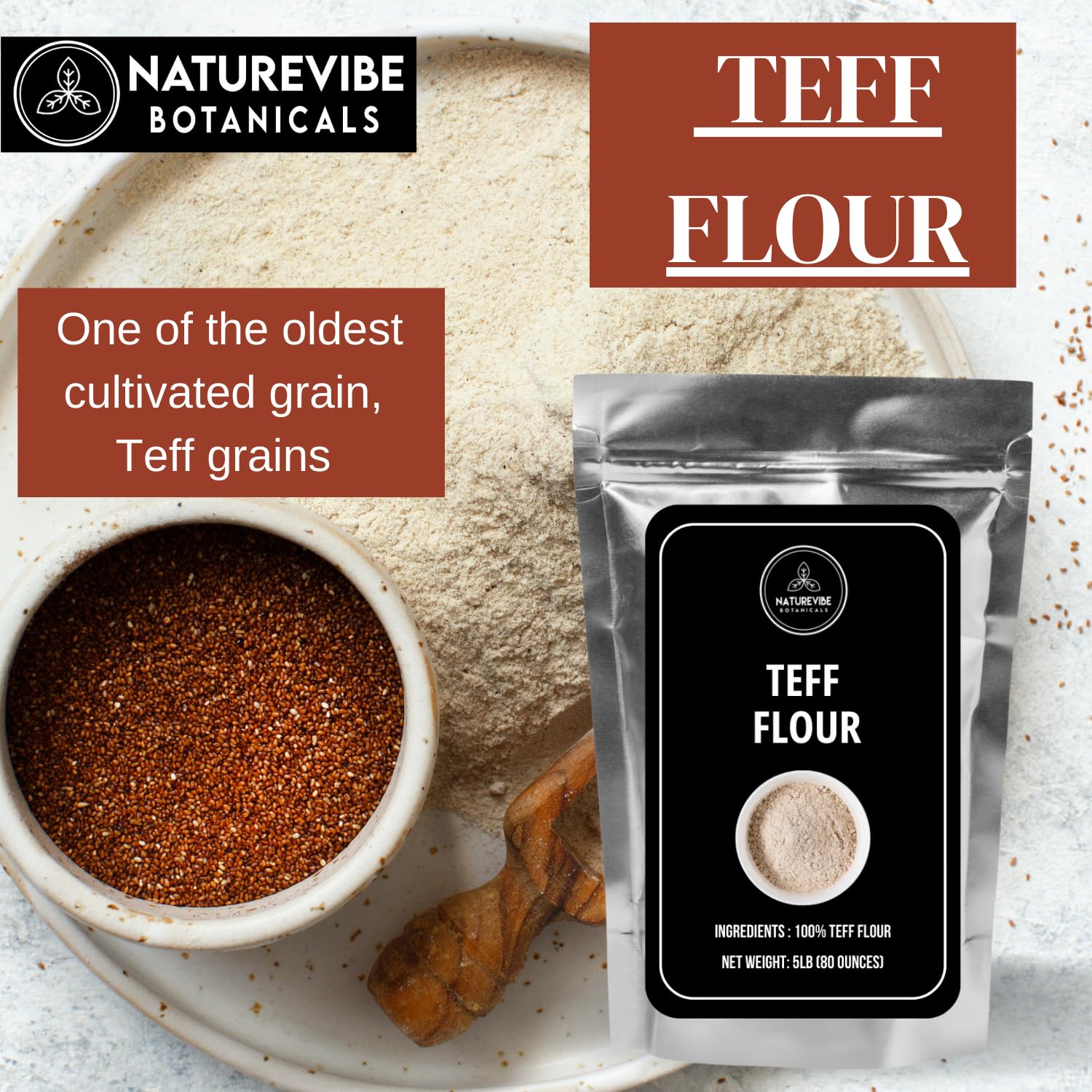 Naturevibe Botanicals Brown Teff Flour 5lb Premium Quality | Used for Baking and as Thickener
