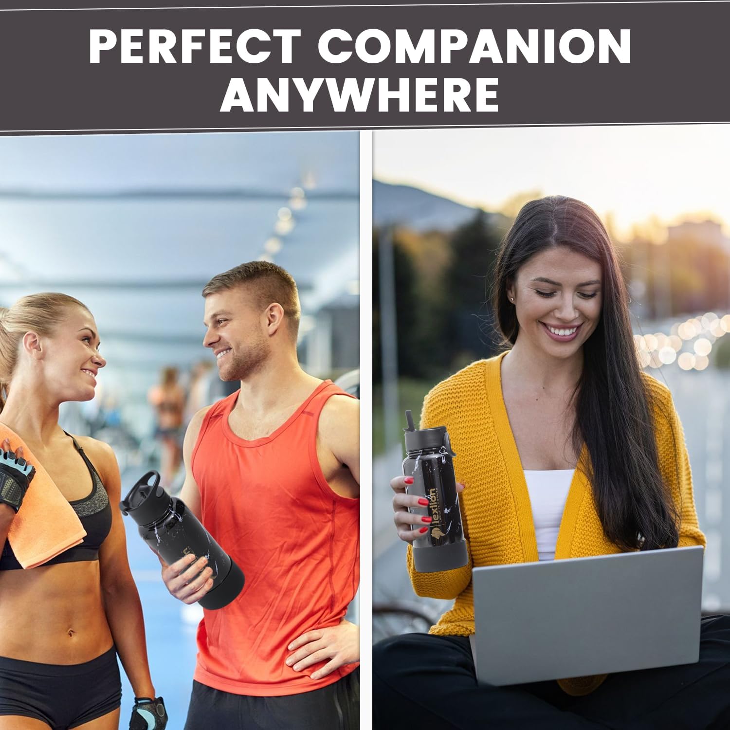- ✅ SILICON BOOT/SLEEVE- Lexlion 32 oz stainless steel water bottle comes with an advanced shock-absorbing silicone material that helps to protect against dents, dings, scratches, and all the imperfections of your 32 oz insulated water bottle. You are protected against an inevitable drop in your water infuser bottle. This will extend the life of your flask. The infuser water bottle is BPA-free and made of soft and highest-quality material.