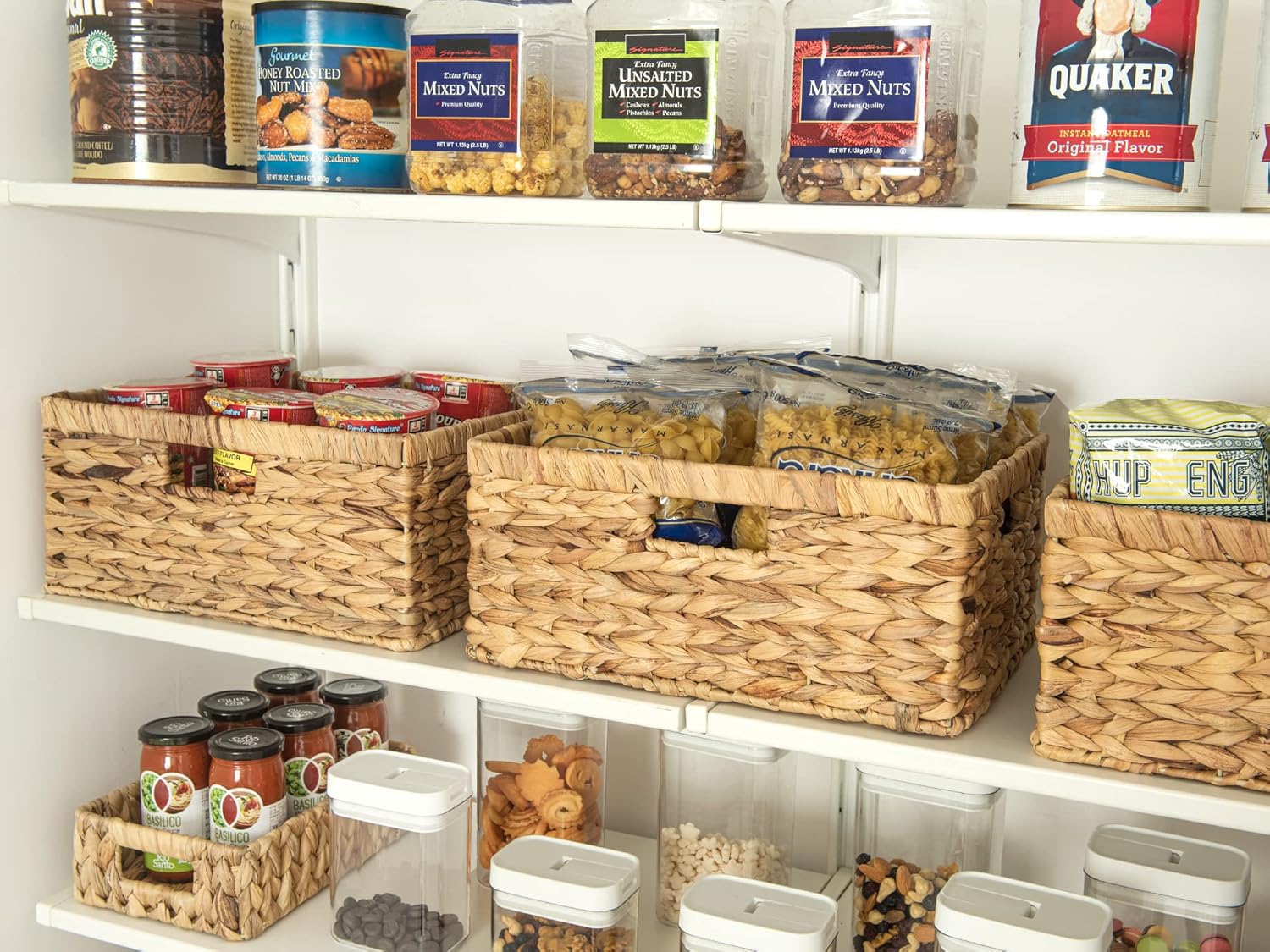 StorageWorks Large Rectangular Wicker Basket, Water Hyacinth Storage Basket with Built-in Handles, 1 Pack