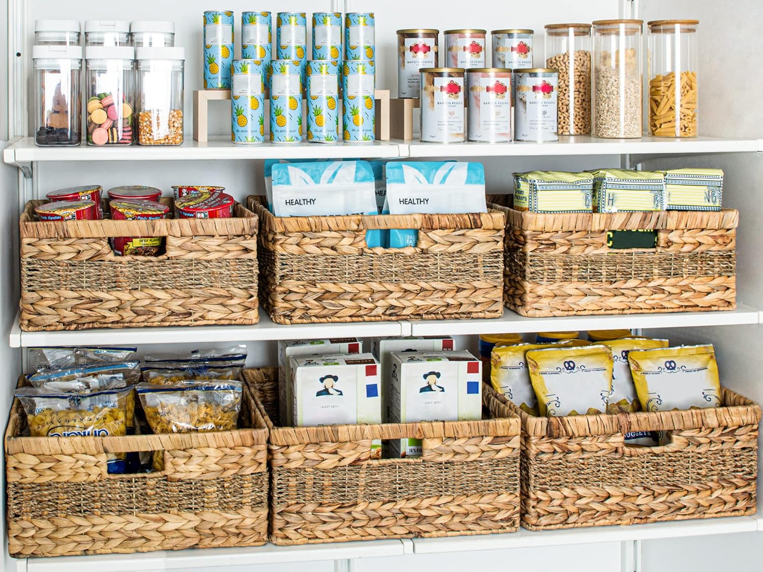 StorageWorks Large Rectangular Wicker Basket, Water Hyacinth and Seagrass Storage Basket with Built-in Handles, 1 Pack