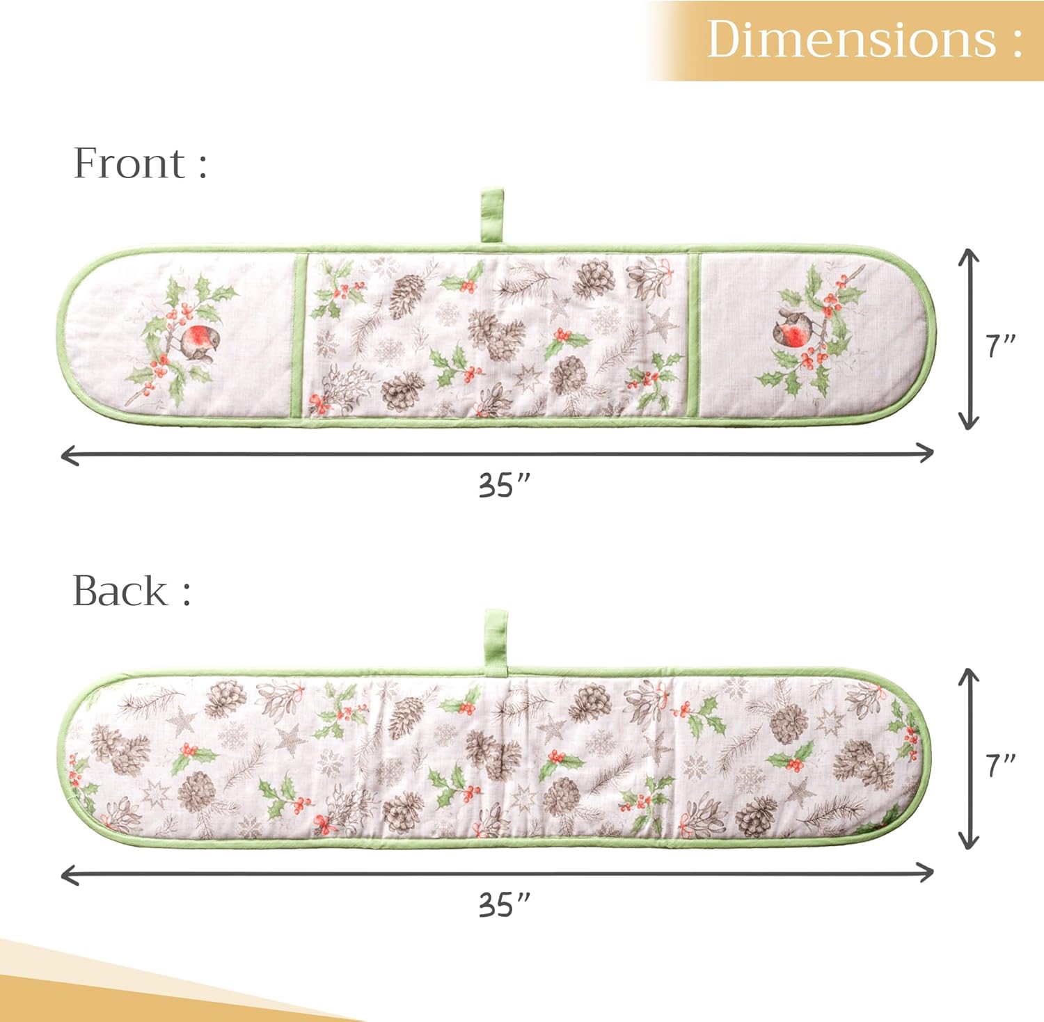 - Package includes: Includes 1 double oven mitt sized 7"x35". Perfect for handling hot cookware safely while adding a touch of European elegance to your kitchen. Designed in Europe and made in India with care