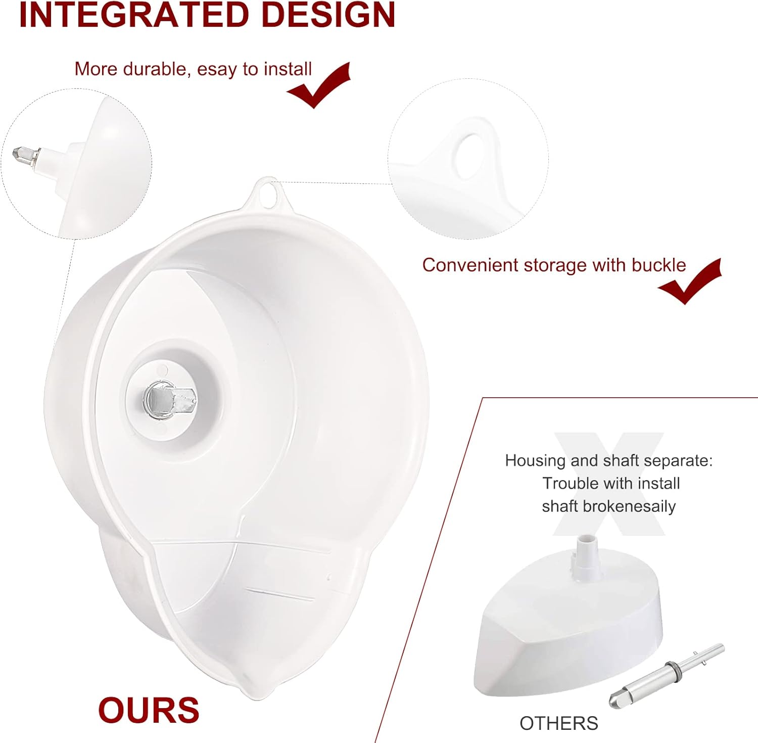 - Obtained patent certification: Integrated design with shaft and housing, easy to install and clean, also more durable to use, the hanging buckle make it more convenient to hanged or stored; This juicer attachment for kitchenaid stand mixer also has smarter design with a deep depth housing(3.54inch/9cm), catch juices during working better, no more juice splashing issue like other juicer, great to be used with various types and sizes of fruit
