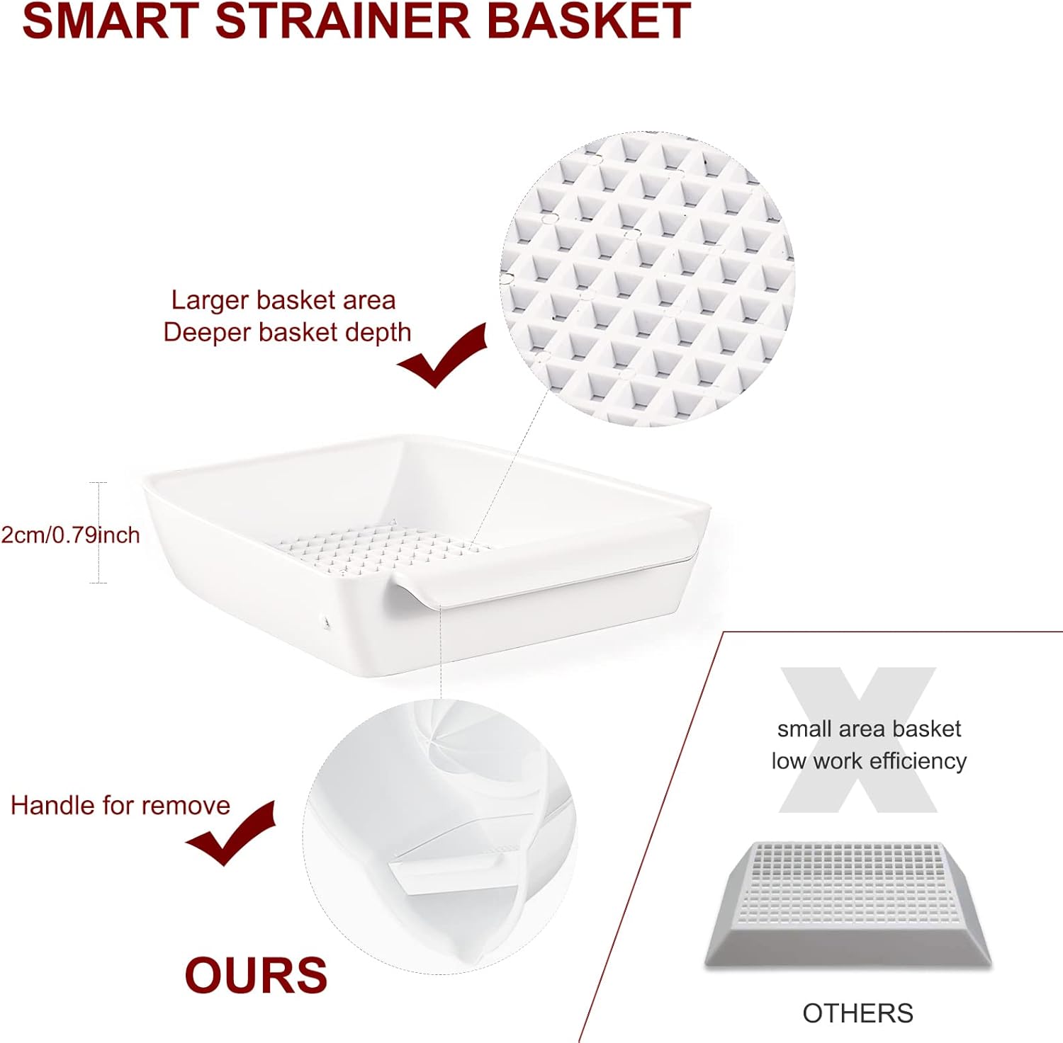 - Humanized design: This juicer attachment for kitchenaid stand mixer comes with strainer Basket catches seeds and pulp as it extracts juice from the reamer, larger basket area and deeper basket depth make the juice more efficient and without the need to continuously remove the basket for cleaning, also designed with a handle, you won’t need to touch the pulp when you remove the basket like the others, much sanitary and convenient