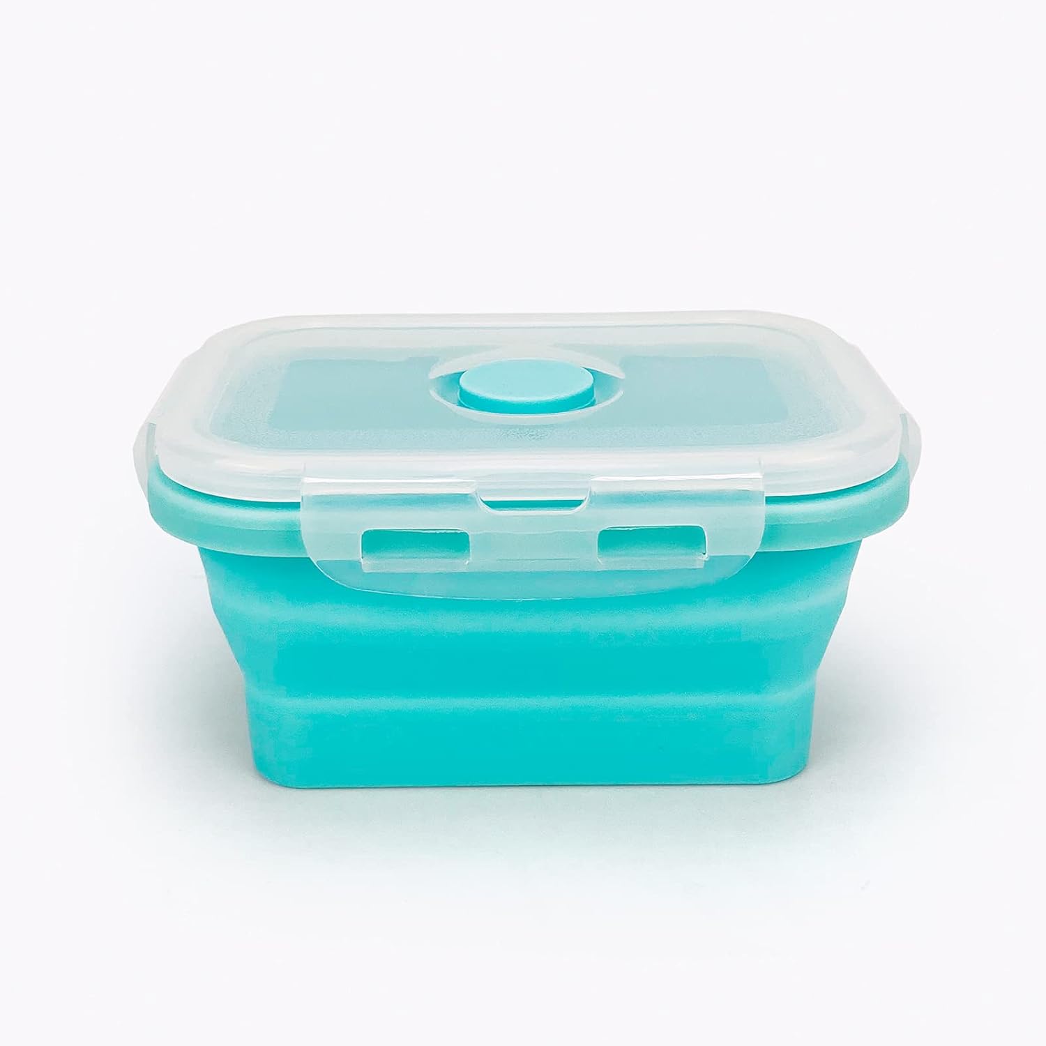 - START YOUR PORTABLE LIFE: Each collapsible food container can hold 350ml(about 12oz) food. In the expanded stage, 5.2inches(L) x 3.8inches(W) x 2.6inches(H); After collapsed, its height becomes 1.2inches. The small food container size makes them fit for storing candies, chocolates, cereals, juices, fruits, nuts, snacks, etc.