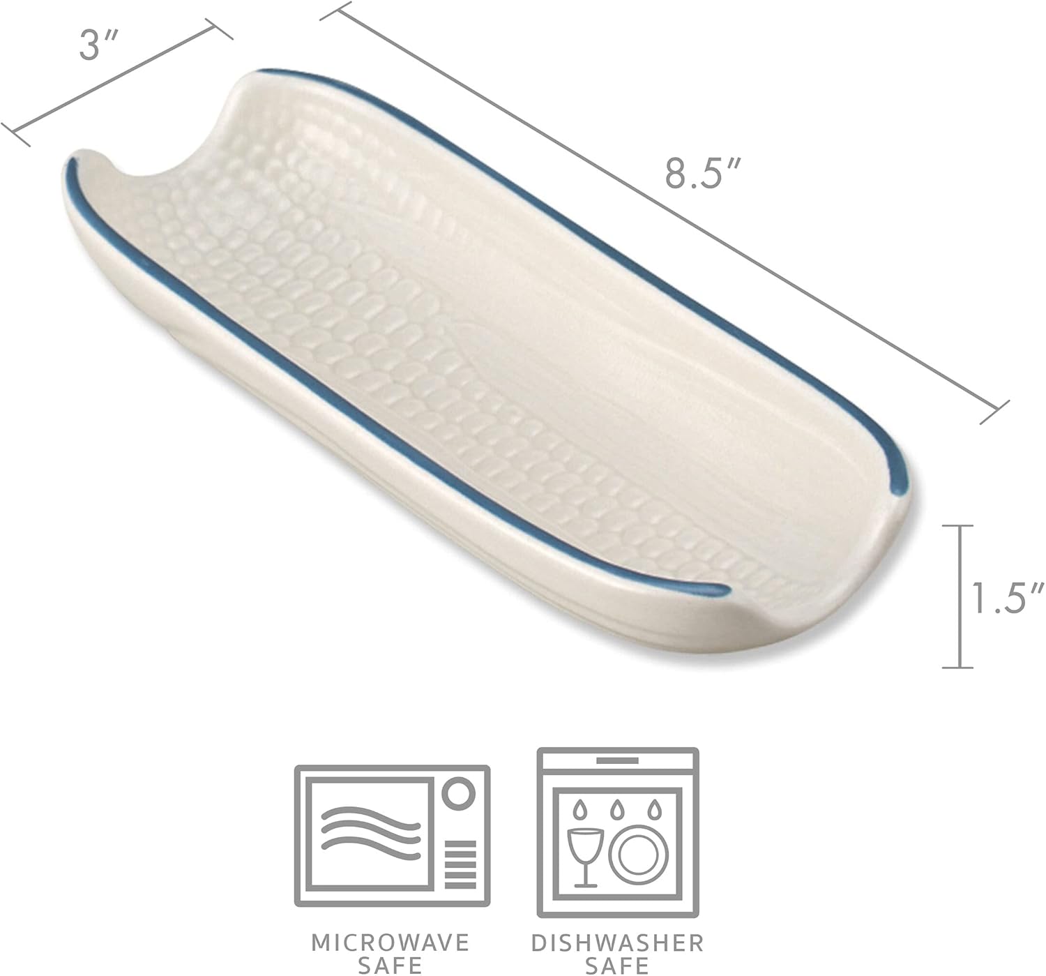 - STYLISH CORN DISHES: these white Yorktowne dishes with blue trim take on the form of ears of corn