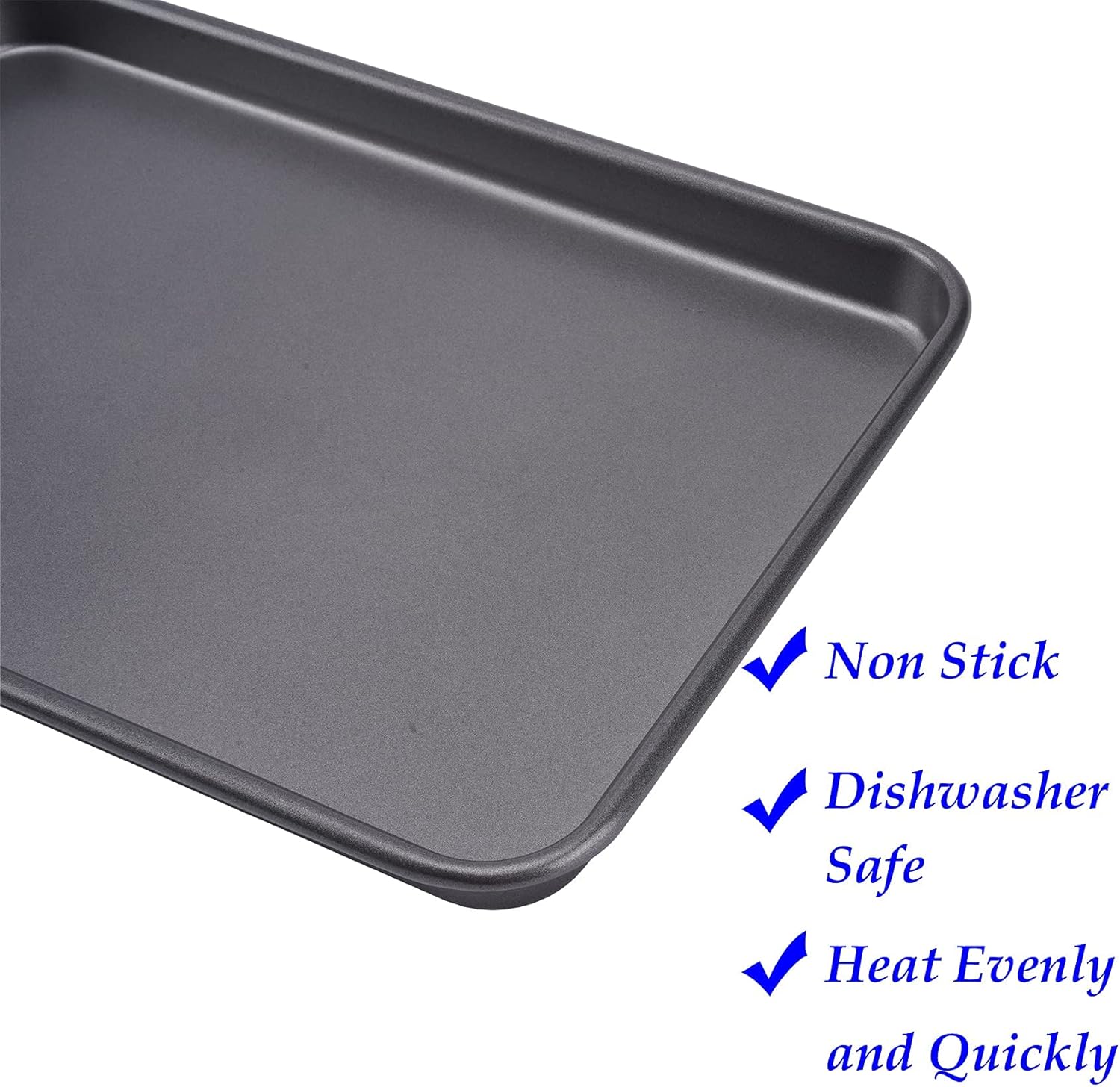 2 Small Baking Sheet 10 x 7.1 Inch (Inner 9.25 X 6.3) Mini Cookie Tray Toaster Oven 1/8 Sheet Pan Nonstick Thicken Heavy Carbon Steel No Warp Non Toxic Magnetic Bakeware