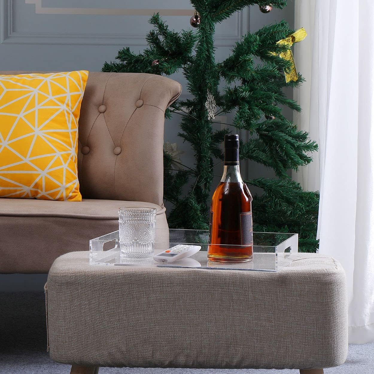 Modern Acrylic Ottoman Tray with Cutout Handles, Acrylic Serving, Organizer Decorative for Living Room, Bedroom,Bathroom and Kitchen Tabletop (Clear, 11x14 Inch)