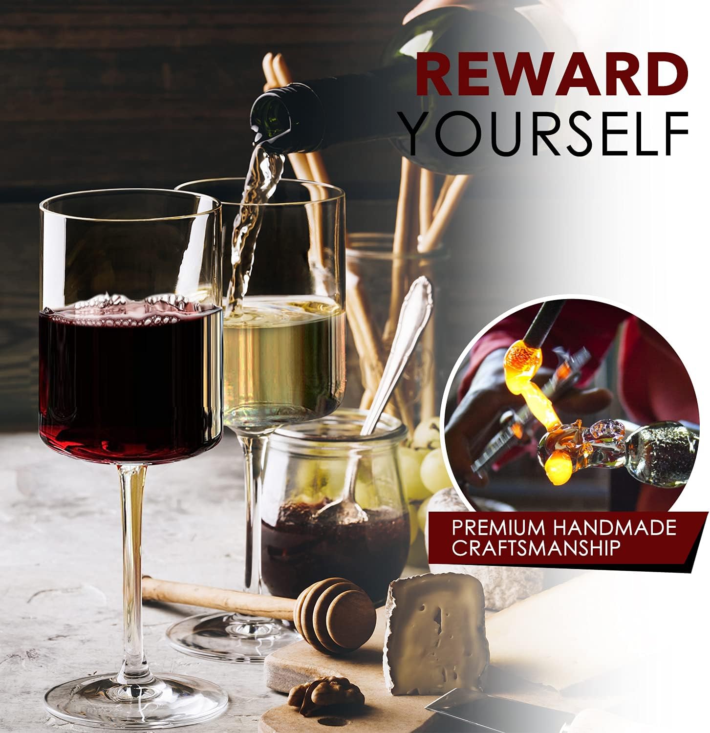 - ✔Traditional Handmade Craftsmanship - These aren't the typical, machine made, basic, cheap, plastic flutes or disposable bulk wine glasses being produced the quickest way possible. Each glass is masterfully shaped and hand blown by artisans using traditional methods.The thin smooth rim is designed to enhance each sip while toasting with your favorite drink - a true definition of EXPERIENCE shared with that special someone.