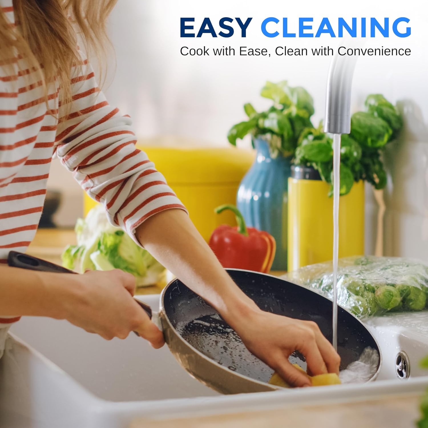 - NON-STICK COATING: The PTFE/PFOA/PFOS-free non stick pot set cooking ware features a long lasting nonstick coating for easy food release or tossing, cleaning & healthy cooking w/ heat resistant lacquer exterior making it resistant to high heat