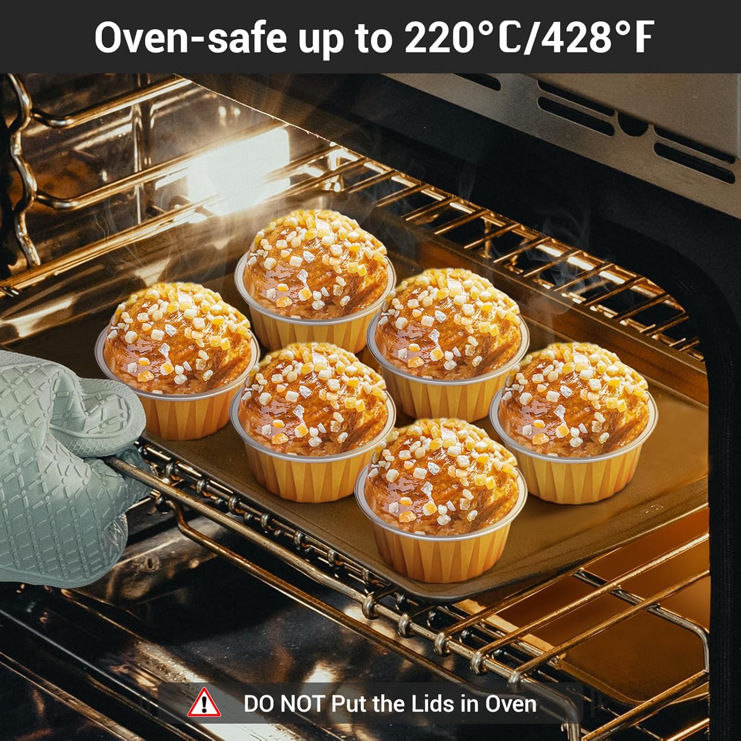 - 【 Aluminum Foil】-Made from sturdy thick aluminum foil with mooth surface, enables our ramekin cups with faster heating.