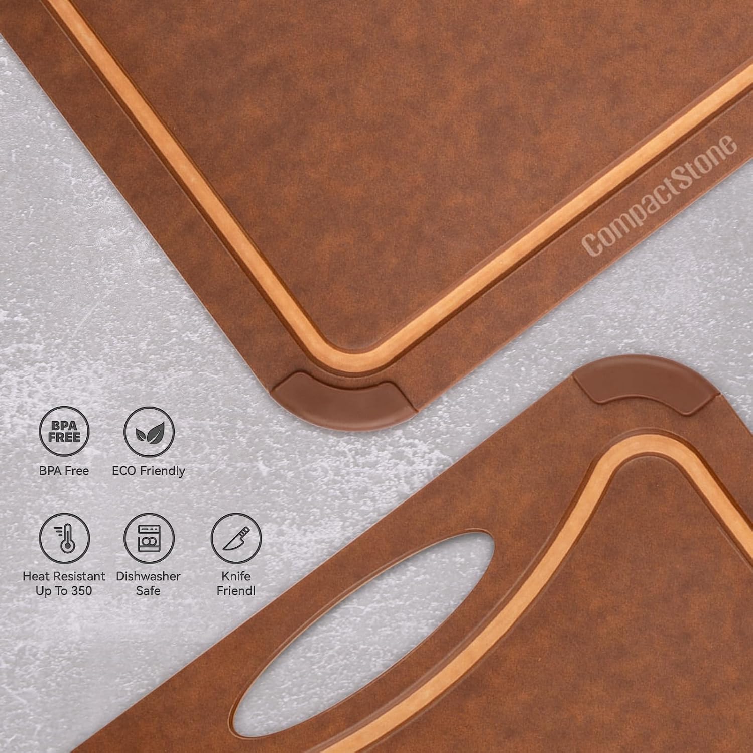 Cutting Board with Non-Slip Feet and Juice Groove for Kitchen, Wood Fiber Composite, 17.3-Inch by 12.8-Inch, Brown