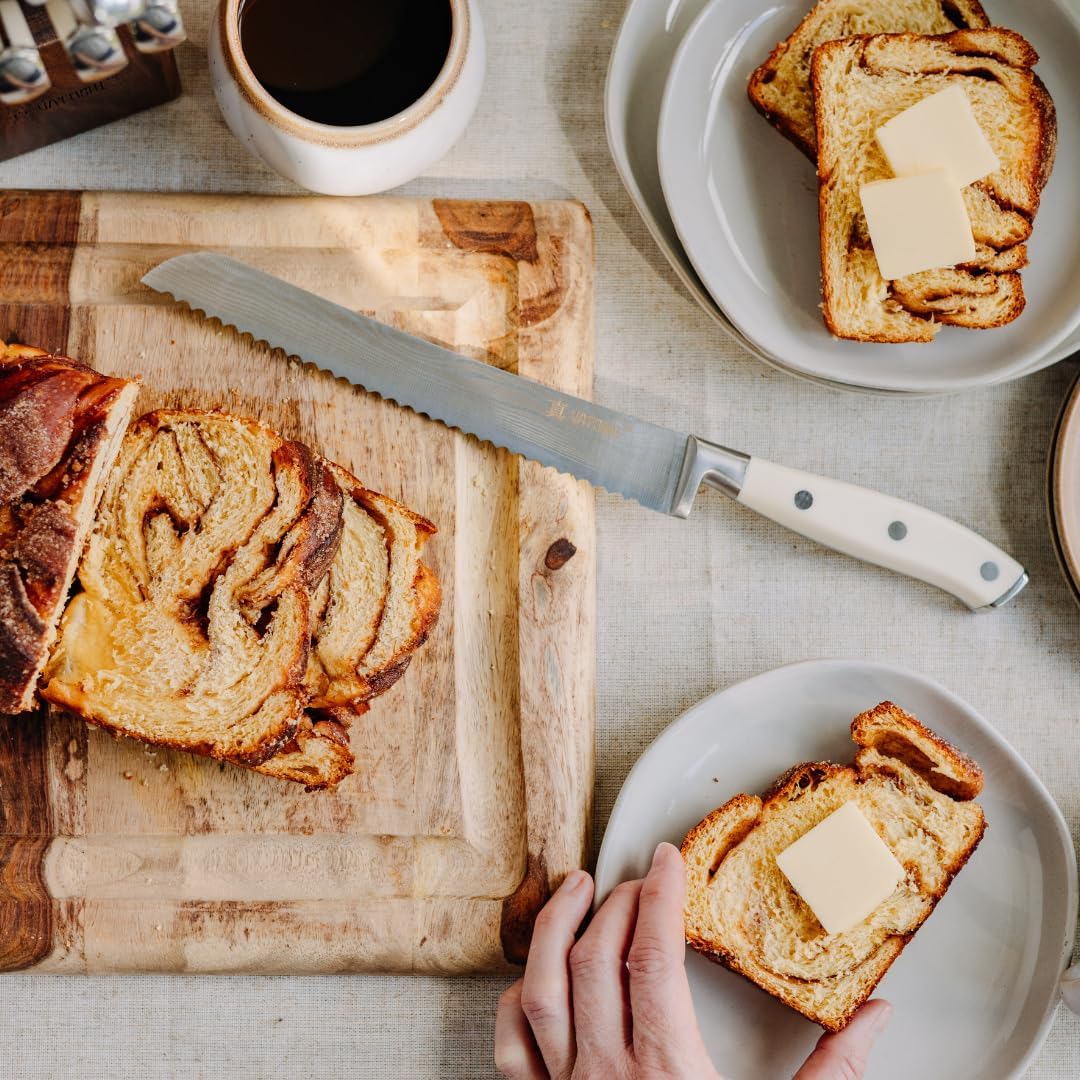 Yatoshi 12 Piece White Knife Block Set - Pro Kitchen Knife Set Ultra Sharp High Carbon Stainless Steel with Ergonomic Handle