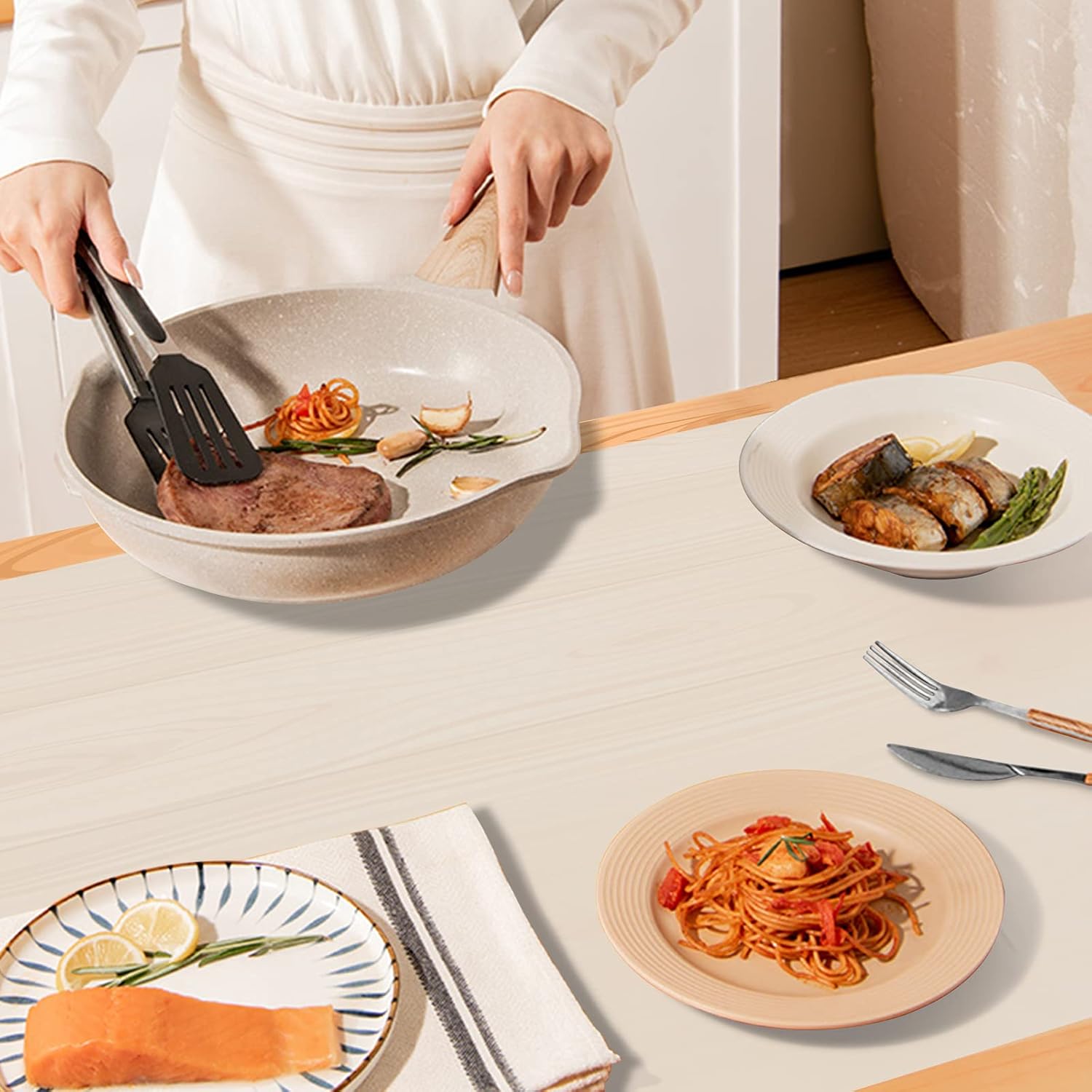 - You Can’t Go Wrong with It: This placemat can solve multiple problems. Great for catching messes. Protect counters from spills, scratches, grease, coffee stains, or damage. Place hot items of all sizes directly on the mat without having to dig through the drawer for a hot pad and no more need for trivets. Reduce the noises made by appliances. No need to worry about items slipping off the countertop. Tools will keep in place. Even if you are rolling dough hard on it, the mat won't slide