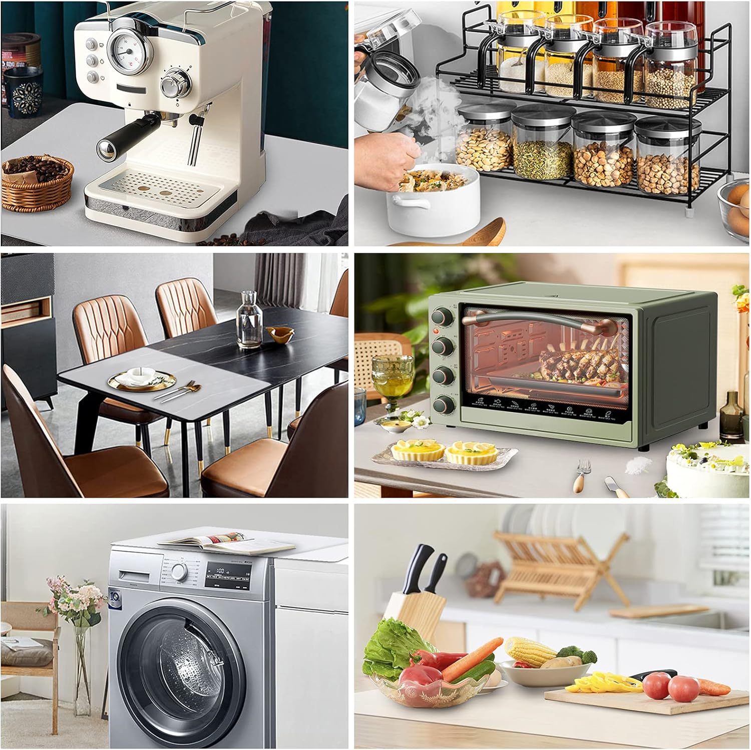 - You Can’t Go Wrong with It: This placemat can solve multiple problems. Great for catching messes. Protect counters from spills, scratches, grease, coffee stains, or damage. Place hot items of all sizes directly on the mat without having to dig through the drawer for a hot pad and no more need for trivets. Reduce the noises made by appliances. No need to worry about items slipping off the countertop. Tools will keep in place. Even if you are rolling dough hard on it, the mat won't slide