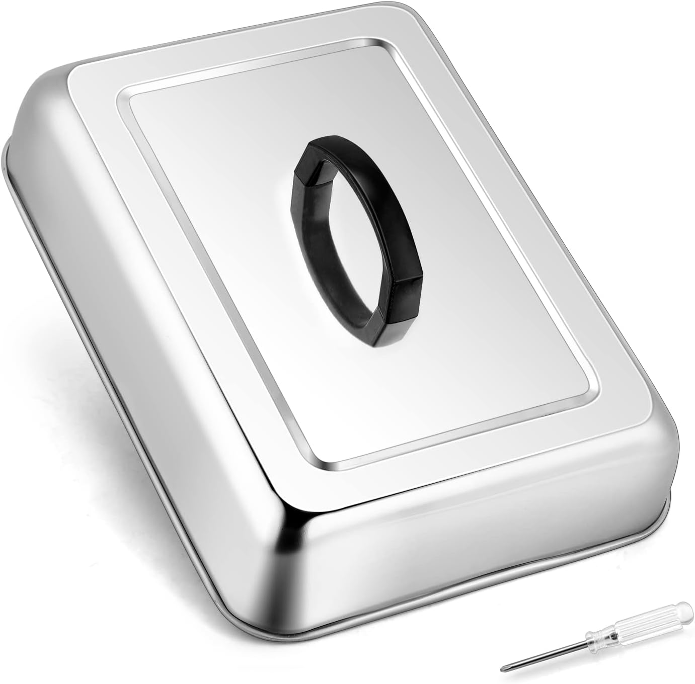 HaSteeL Rectangular Basting Cover, Stainless Steel Cheese Melting Dome Steaming Cover Lid, Heavy Duty Griddle Grill Accessories for Flat Top Teppanyaki BBQ Kitchen Indoor & Outdoor, Dishwasher Safe