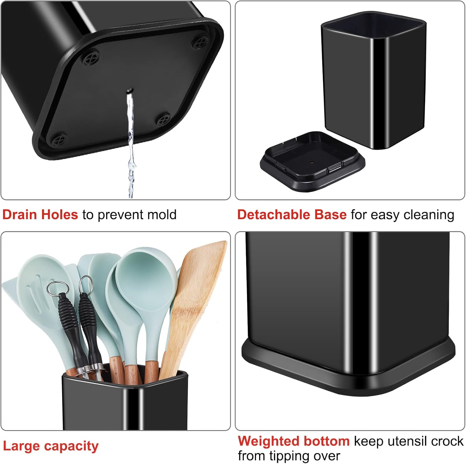 - MODERN DESIGN: Black color is absolutely modern and all-match, extra thick stainless steel for metal heavy-duty, sturdy and has good durability; It's a fashion and modern kitchen utensil organizer on your counter.