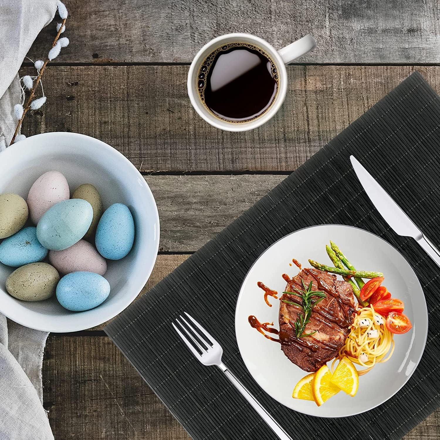 ANDSTAR Set of 8 Pcs Bamboo Placemats Sushi Rolling Mat Japanese Style Natural Anti-Slip Bamboo Placemats Washable Heat-Resistant Table Mats for Dining Room and Kitchen(Black)