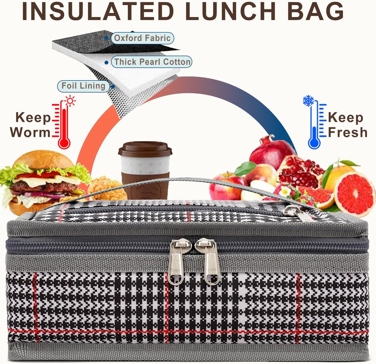 FlowFly Small Insulated Lunch box Portable Soft Bag Mini Cooler Thermal Meal Tote Kit with Handle for Work & School (W&B)