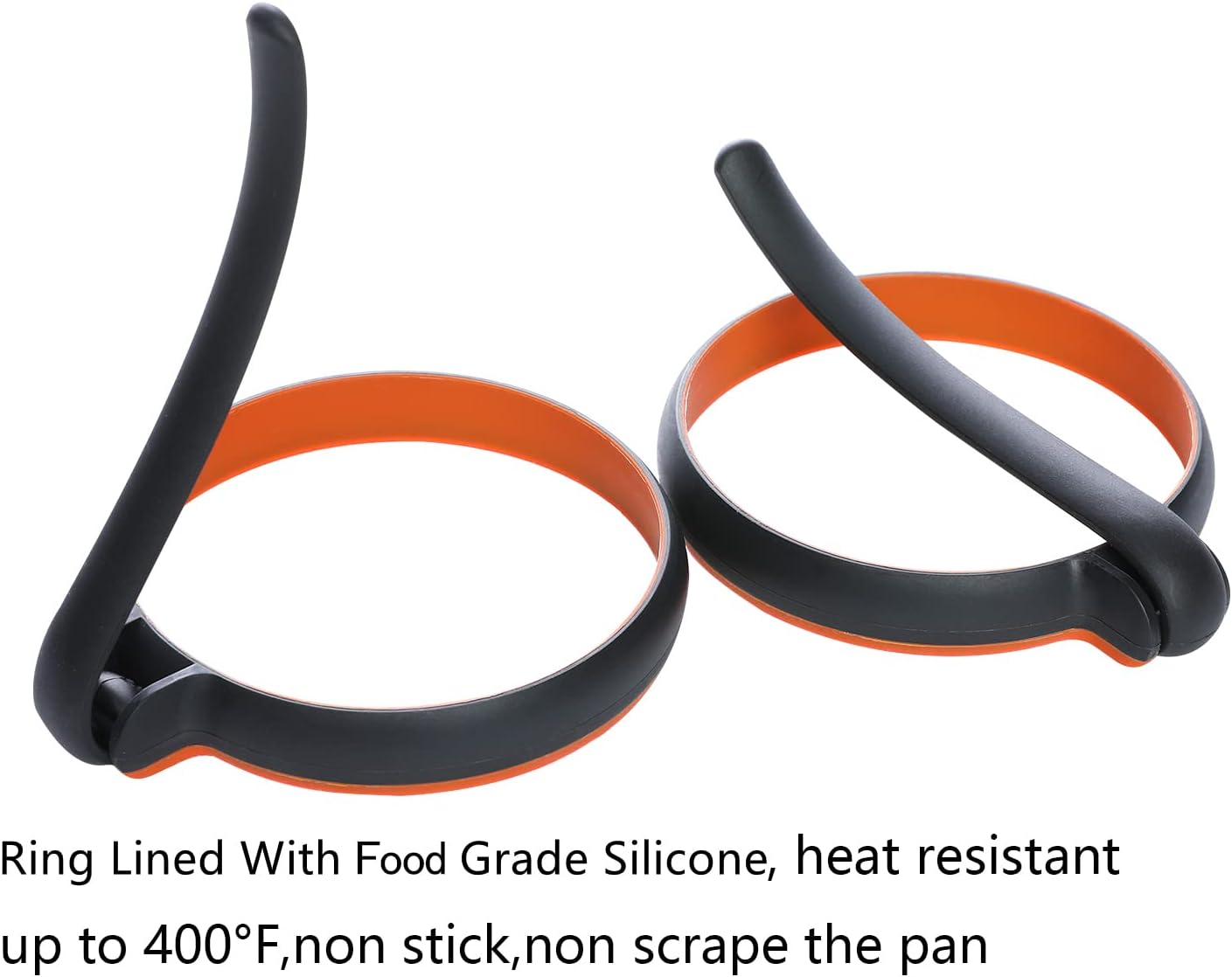 - Silicone Egg Circles: Heat Resistant Up To 400° F -Circle egg ring with unique design for stay-cool handle makes fried egg molds easy to use. egg fryer is heat-proof, safely and perfectly at extremely high cooking temperatures, and can be hand washed using little soap & water, or to save yourself time & effort, simply pop the mold into the dishwasher.