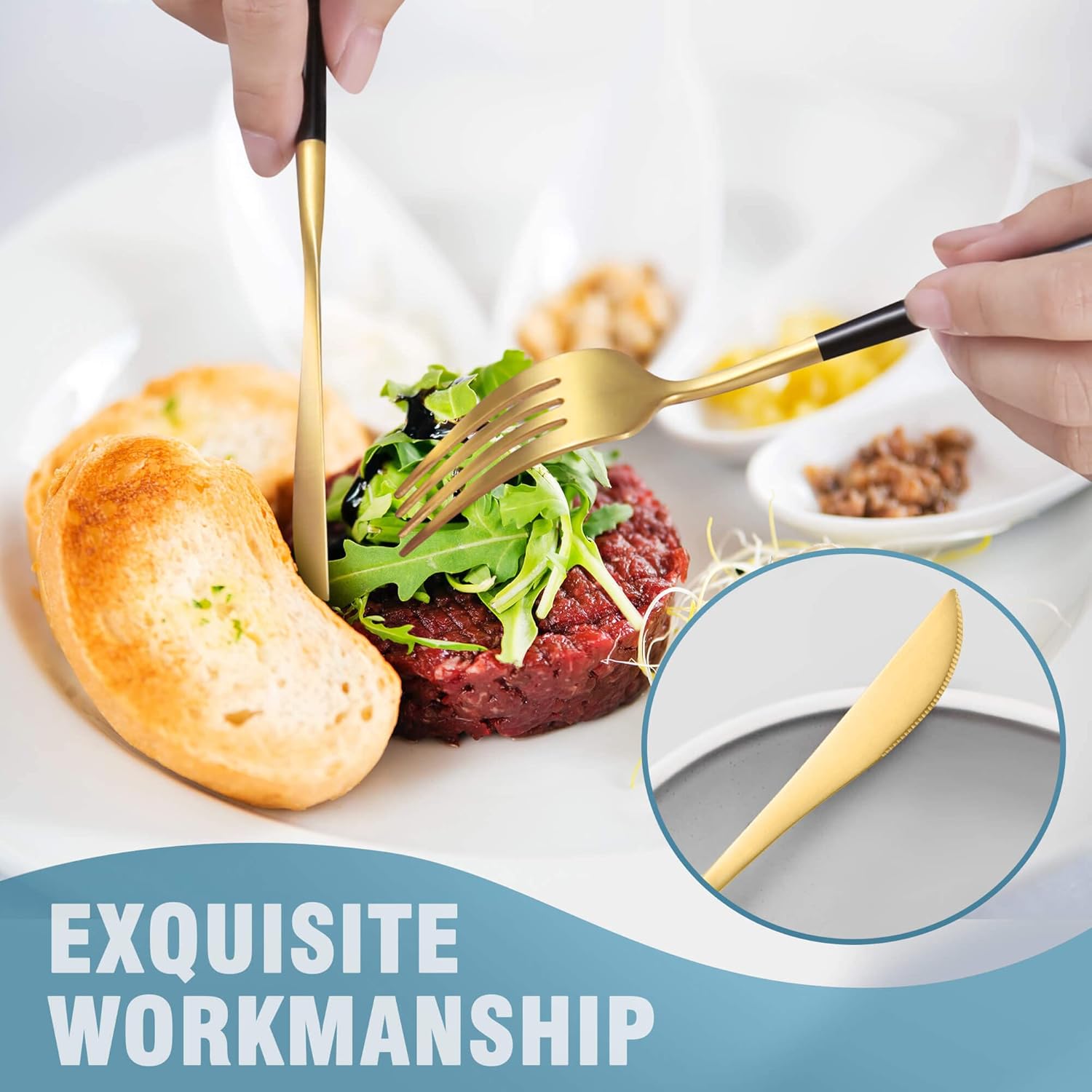 - MODERN DESIGN : The cutlery set is modern and luxury appearance can be a good match for your existing dinnerware set and elevate everyday meals into a fine dining experience