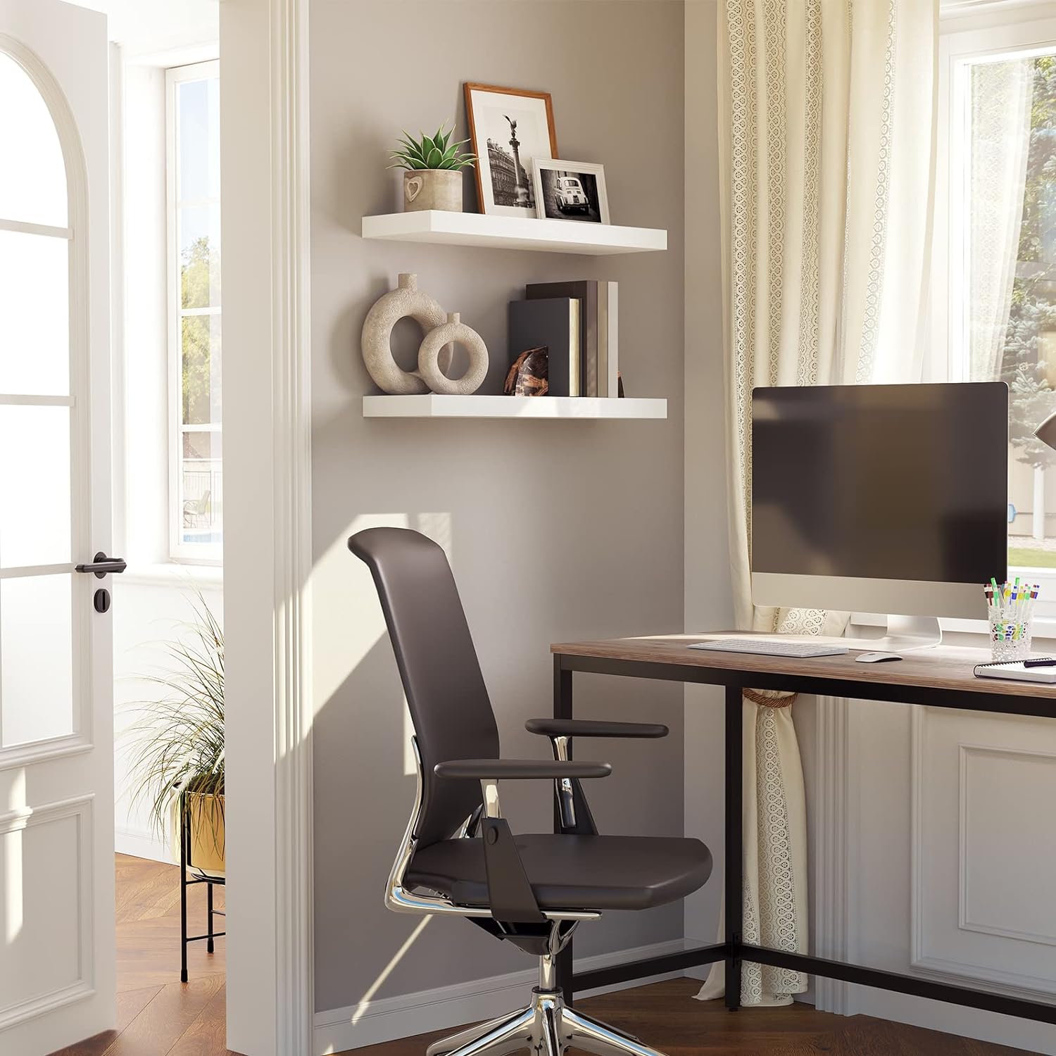 HOOBRO Floating Shelves for Wall, Wall Mounted Shelf Set of 2, 23.6" Hanging Shelf with Invisible Brackets, for Wall in Bathroom, Bedroom, Toilet, Kitchen, Living Room, Office, White WT60BJ01