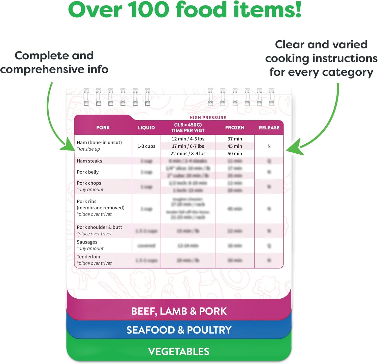 - Master Your Instant Pot with Must-Have Instant Pot Accessories. Featuring a magnetic instant pot cooking cheat sheet booklet loaded with over 100 food entries. This pressure cooker accessory is organized into 6 food categories with precise cooking times, pressure levels, and tips. Designed for all instant pot pressure cooker models, it's a must-have kitchen tool for home cooks seeking speed, accuracy, and flavor.