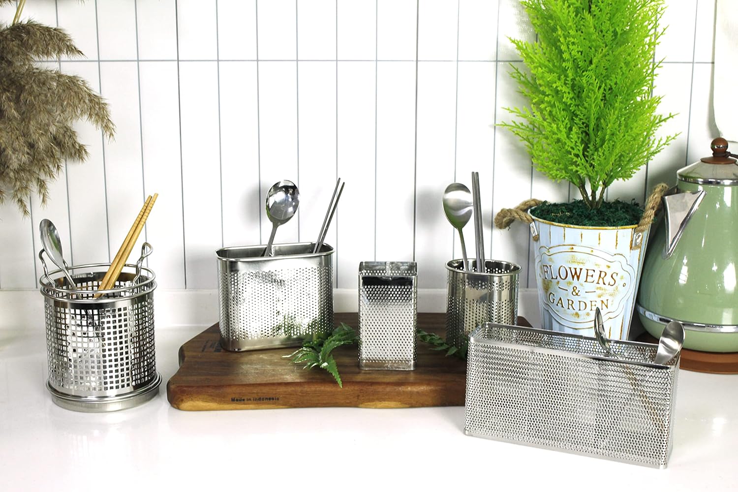 - Easy To Clean: This stainless steel silverware organizer keeps the kitchen sink and counters less cluttered, and the kitchen utensil drainer is easy to clean. This basket with holes in bottom can be rinsed with running soapy water, and ready to used again after drying.