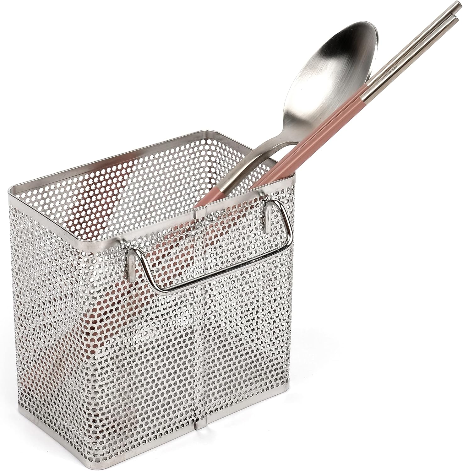 LENITH Kitchen Utensil Chopsticks Perforated Holder with Hooks - 304 Stainless Steel Storage for Organizer Dishwasher Safe (Small Rectangle)