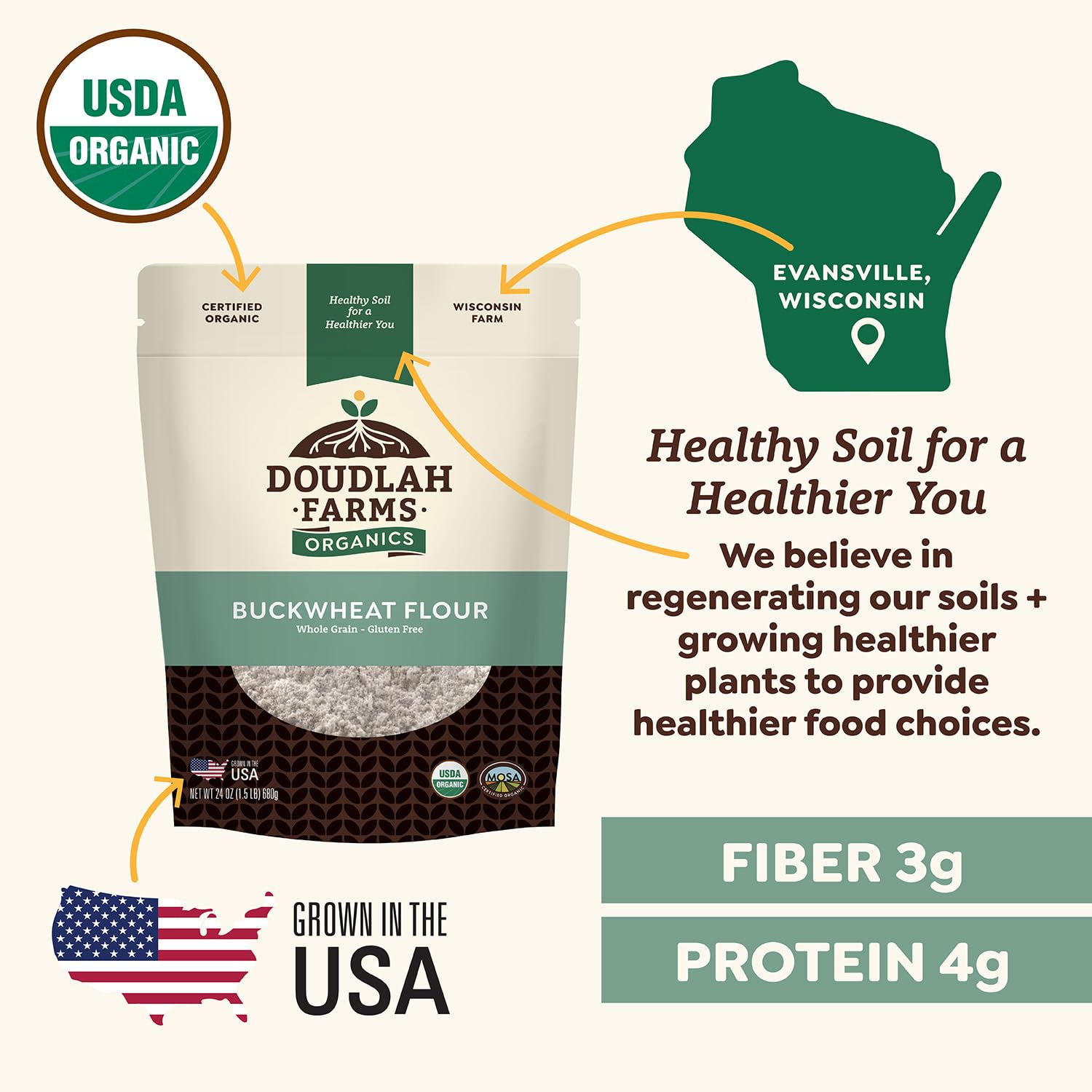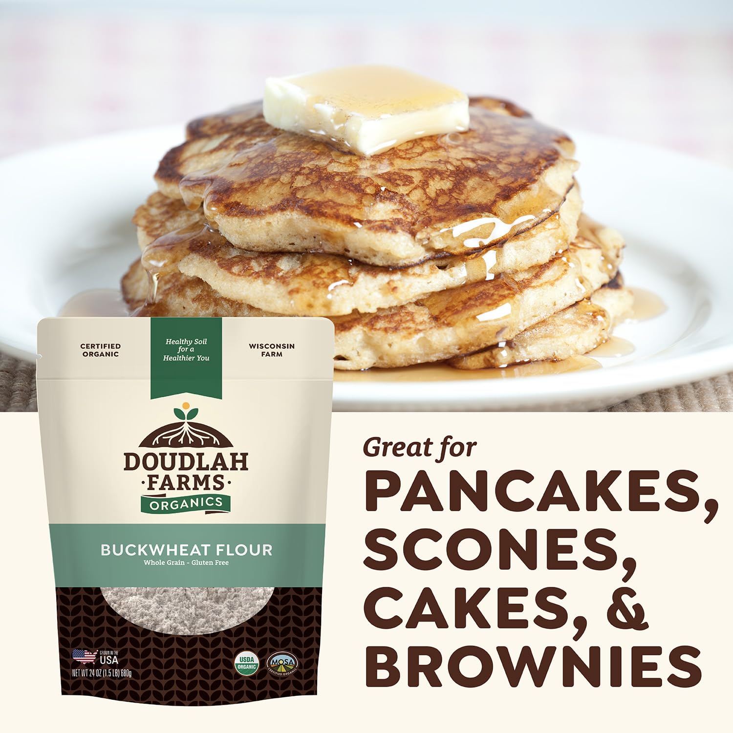 Organic Buckwheat Flour 1.5 lb - Non-GMO, USDA Organic, Gluten Free, Vegan - For Baking Bread, Pancakes, and More! Grown In USA, Farmed From Regenerative Soil by Doudlah Farms