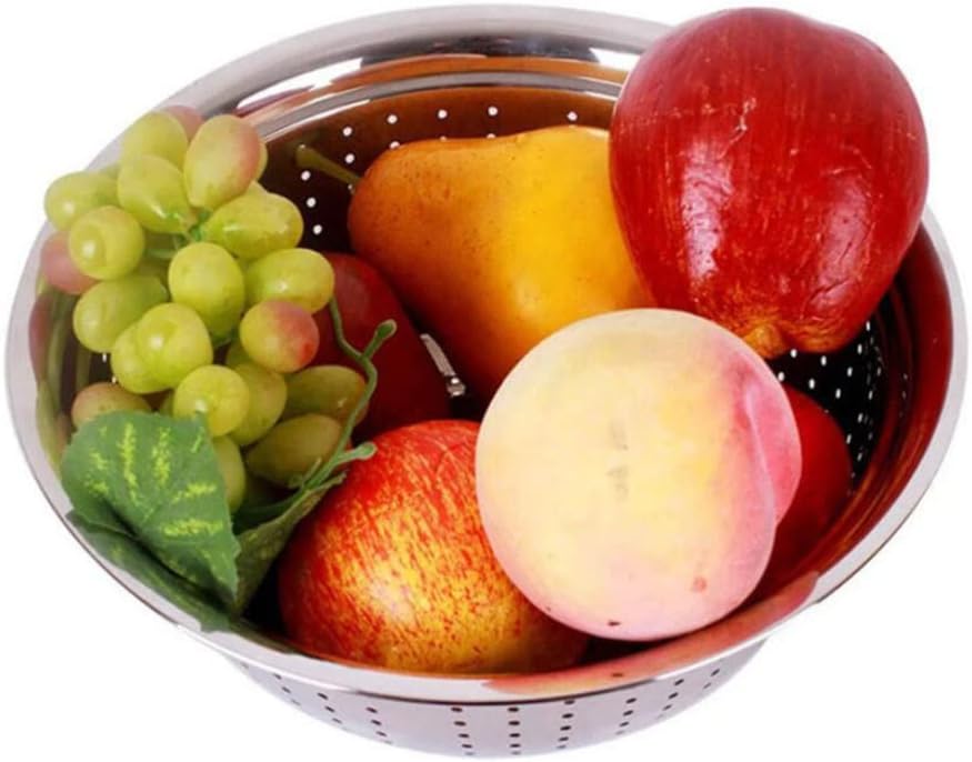 Hemoton Stainless Steel Rice Washer Bowl and Strainer Colander for Kitchen Use Multipurpose Fruit Vegetable Washing Basket 8.66 Inch Diameter