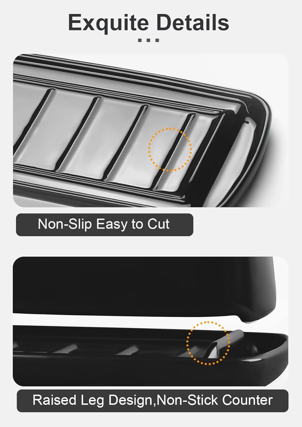 - 🍰 Easy Scoop And Clean: The black butter dish raised non-slip strip and curved ramps on both sides help you easily scoop up butter. The top of the ramp act as a scrape plate to clean your knife and collect butter.