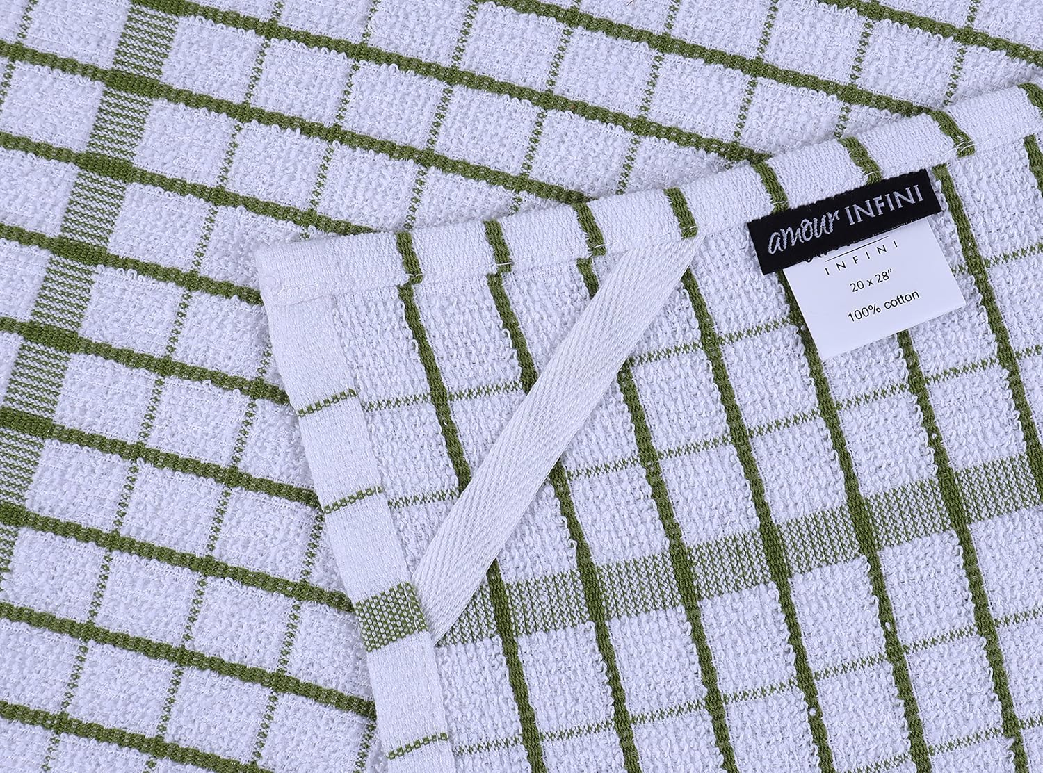 AMOUR INFINI Kitchen Towels Set of 4 - Highly Absorbent, Super Soft Terry Cotton 20x28 Inch Dish Towels with Hanging Loop - Hand & Tea Towels for Cleaning & Drying Dishes (Green)