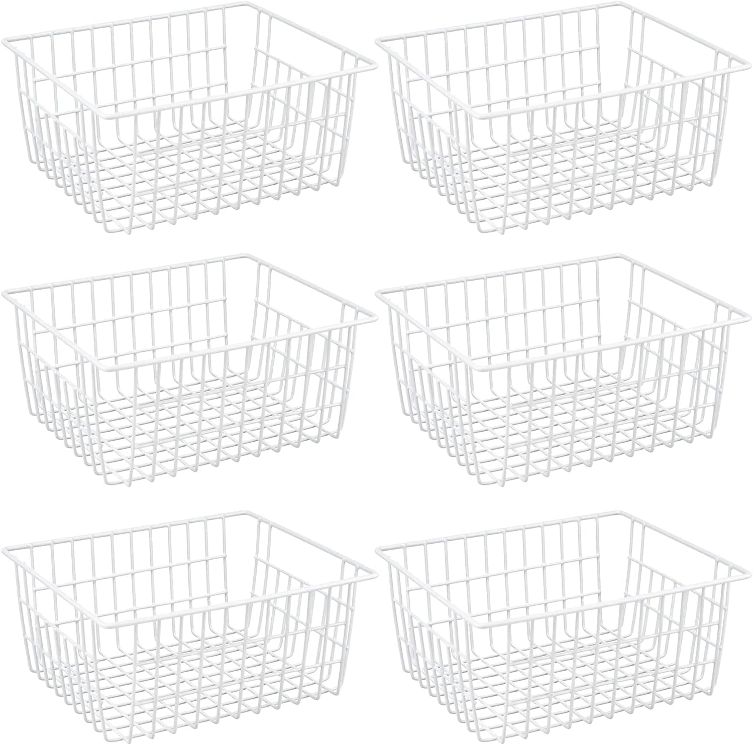 Redrubbit Wire Storage Baskets, Large Farmhouse Metal Freezer Basket Storage Organizer Bins with Handles for Kitchen Cabinets, Pantry, Closets, Bedrooms, Bathrooms, Set of 6, White