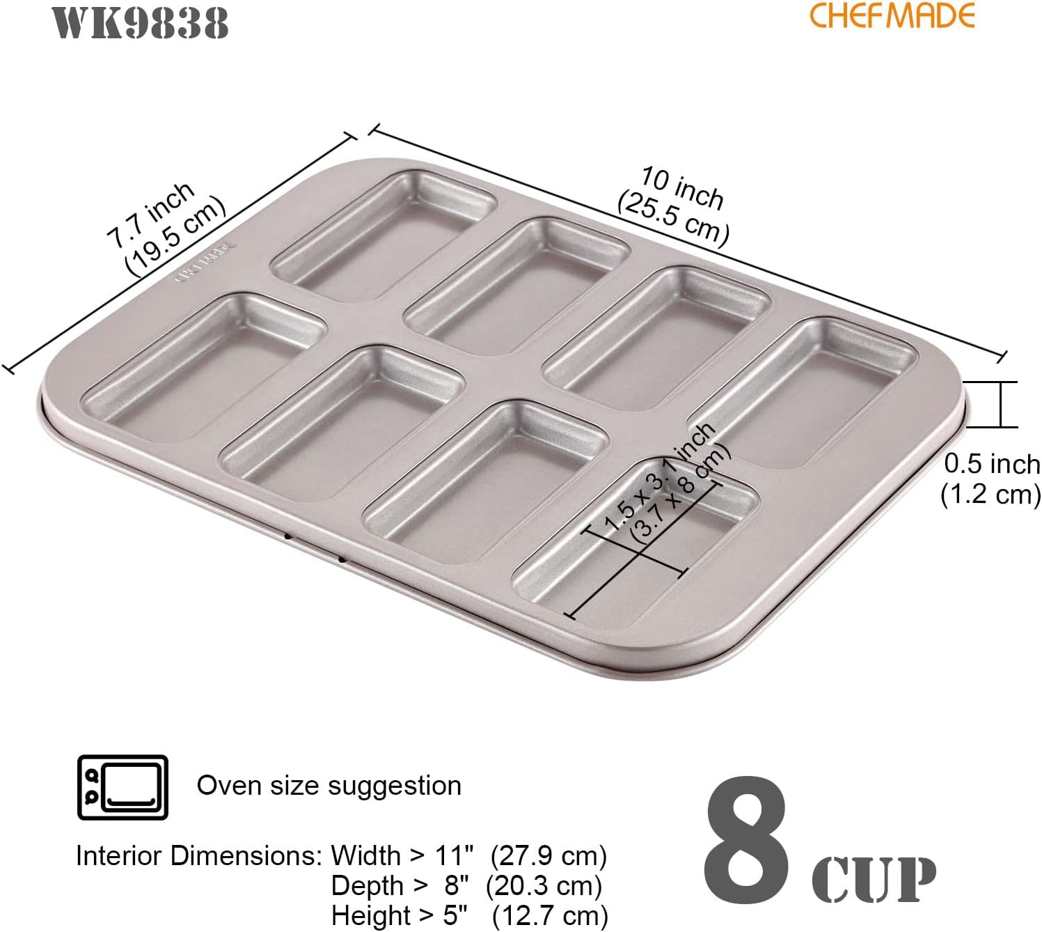 CHEFMADE Financier Cake Pan, 8-Cavity Non-Stick Muffin Pan Biscuits Cookies Bakeware for Oven Baking (Champagne Gold)