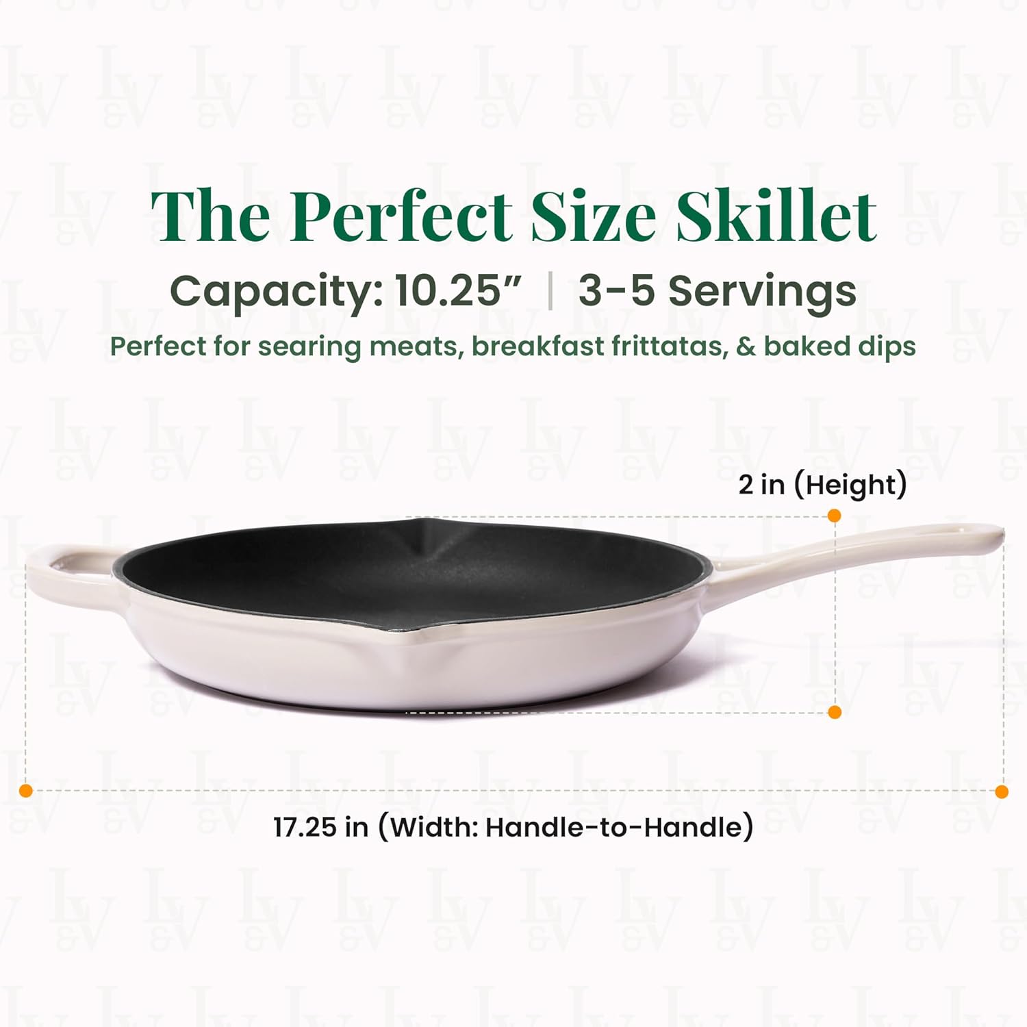 Larder & Vine Enameled Cast Iron Skillet | 10.25 inch Cast Iron Pan | Saute Pan with Pour Spouts | Enamel Coated Cast Iron Skillet | Compatible on All Cooktops & Oven Safe to 500° F | Stone