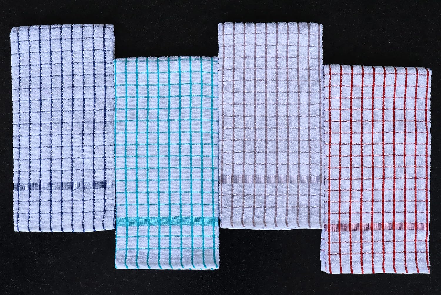 - SET OF 4 DISH TOWELS: This pack includes 4 premium 20" x 28" kitchen dish cloths made from soft, highly absorbent terry cotton. Perfect for everyday kitchen use, these dish towels offer excellent absorbency and durability for drying dishes, cleaning, and wiping surfaces.