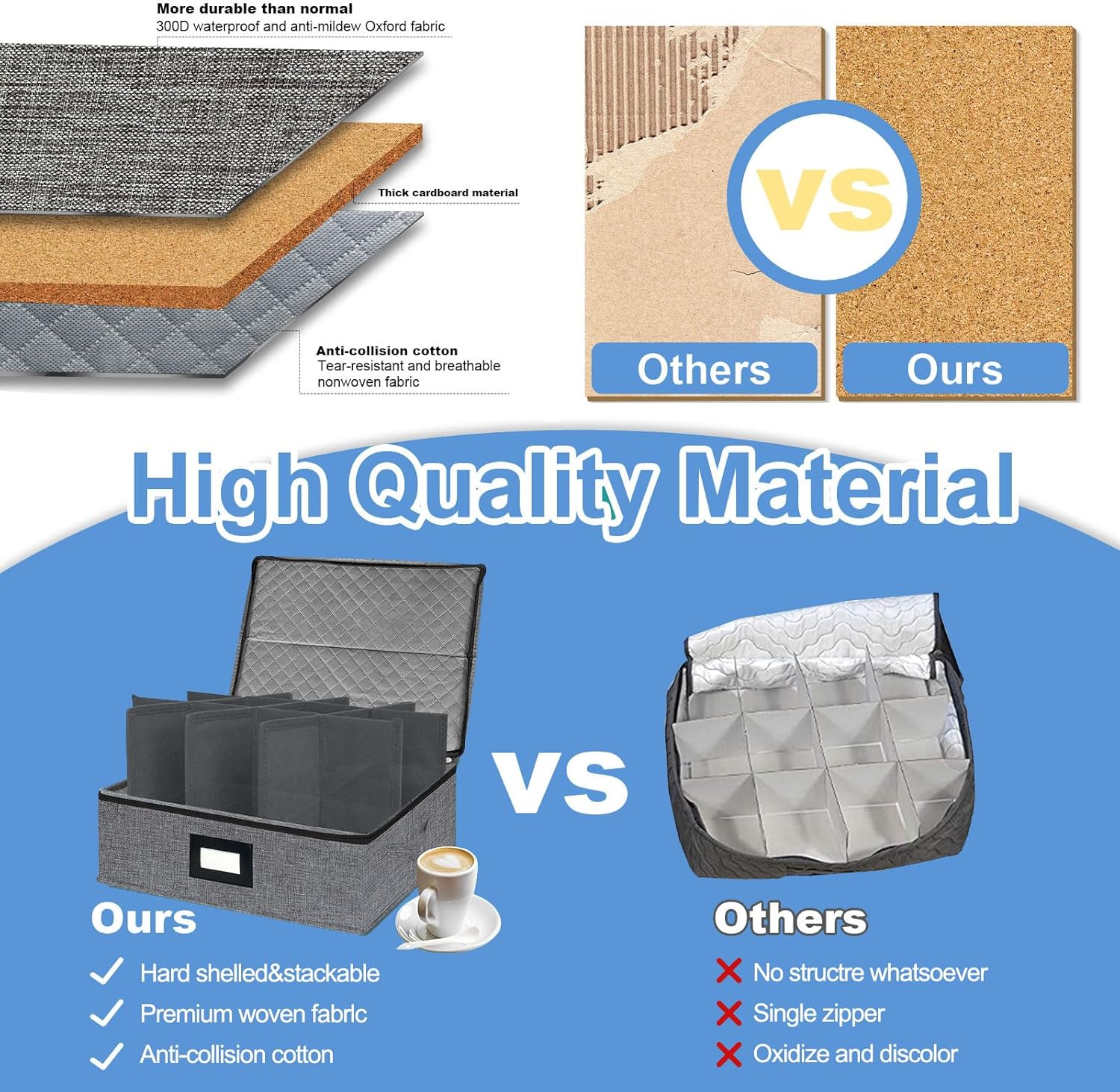 - 🥛[Perfect Design] - The mug storage box holds 12 Coffee Mugs and Tea Cups, and measures 16.5x13x6inches. Each china storage box comes with a label holder for easy identification of the contents.
