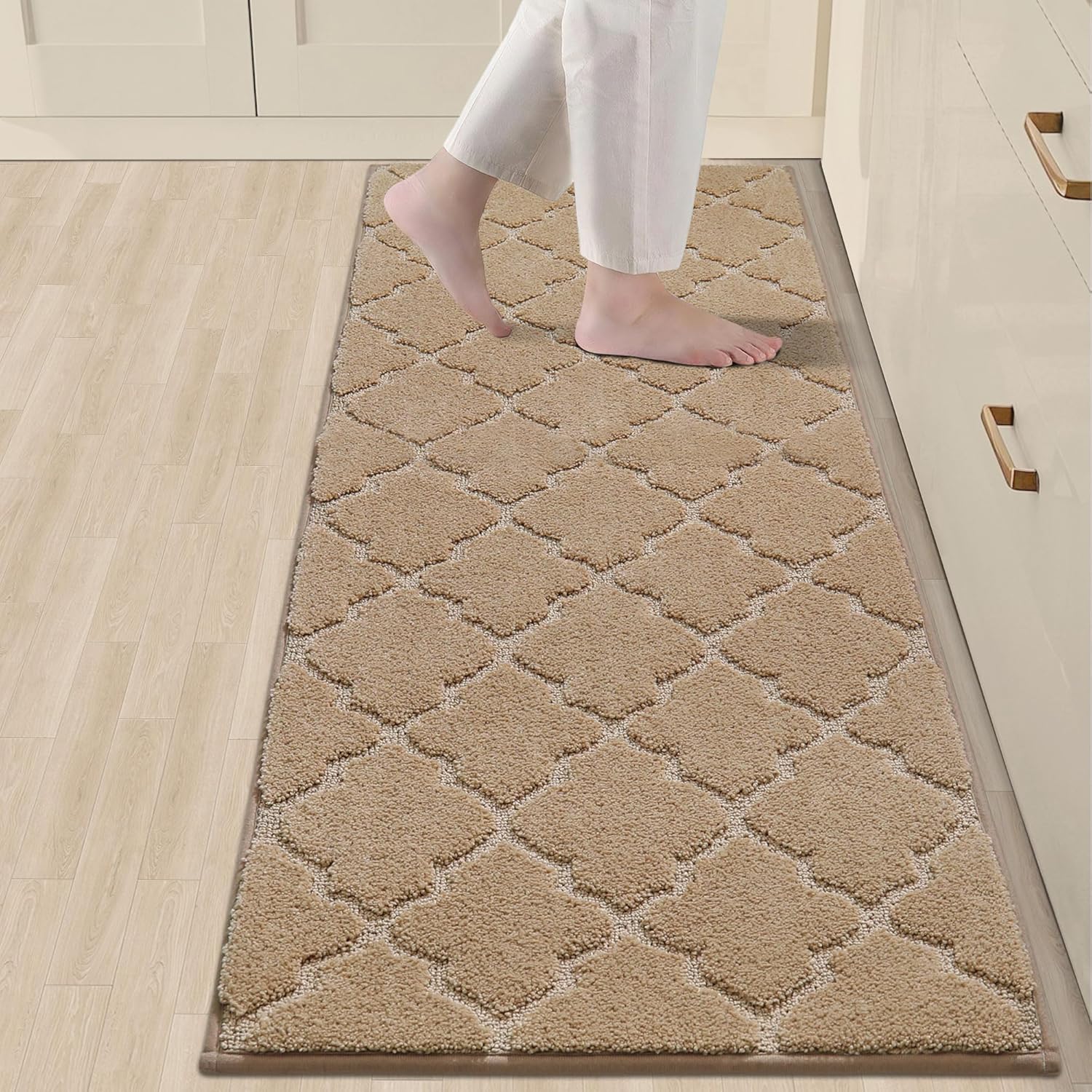 COSY HOMEER Soft Floor Mats for in Front of Sink Super Absorbent Kitchen Rugs 20"x59" Non-Skid Standing Mat Washable,Polyester,Beige