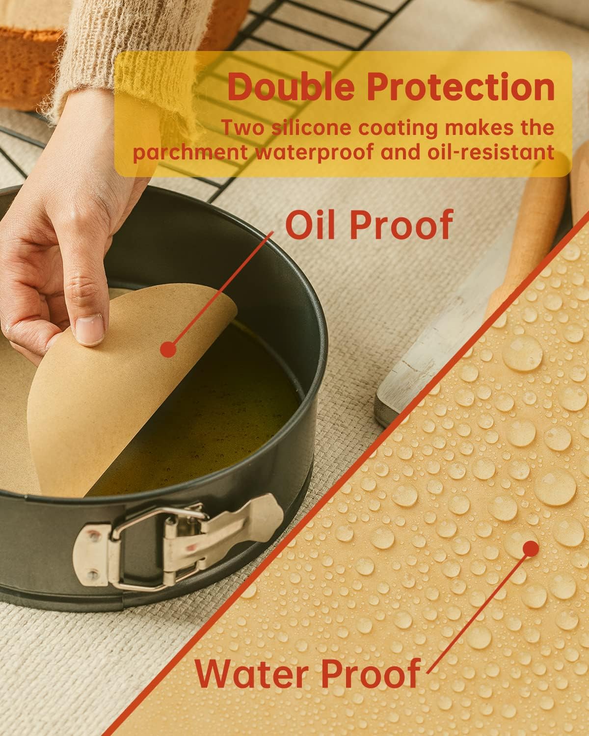 - Non-Stick & Easy to Clean - Parchment rounds use the double silicone coating side design, which means that no food residue will be left on your pans, and insures your cake that comes neatly out of the pan,you can easily clean and save your time.Easier cooking!
