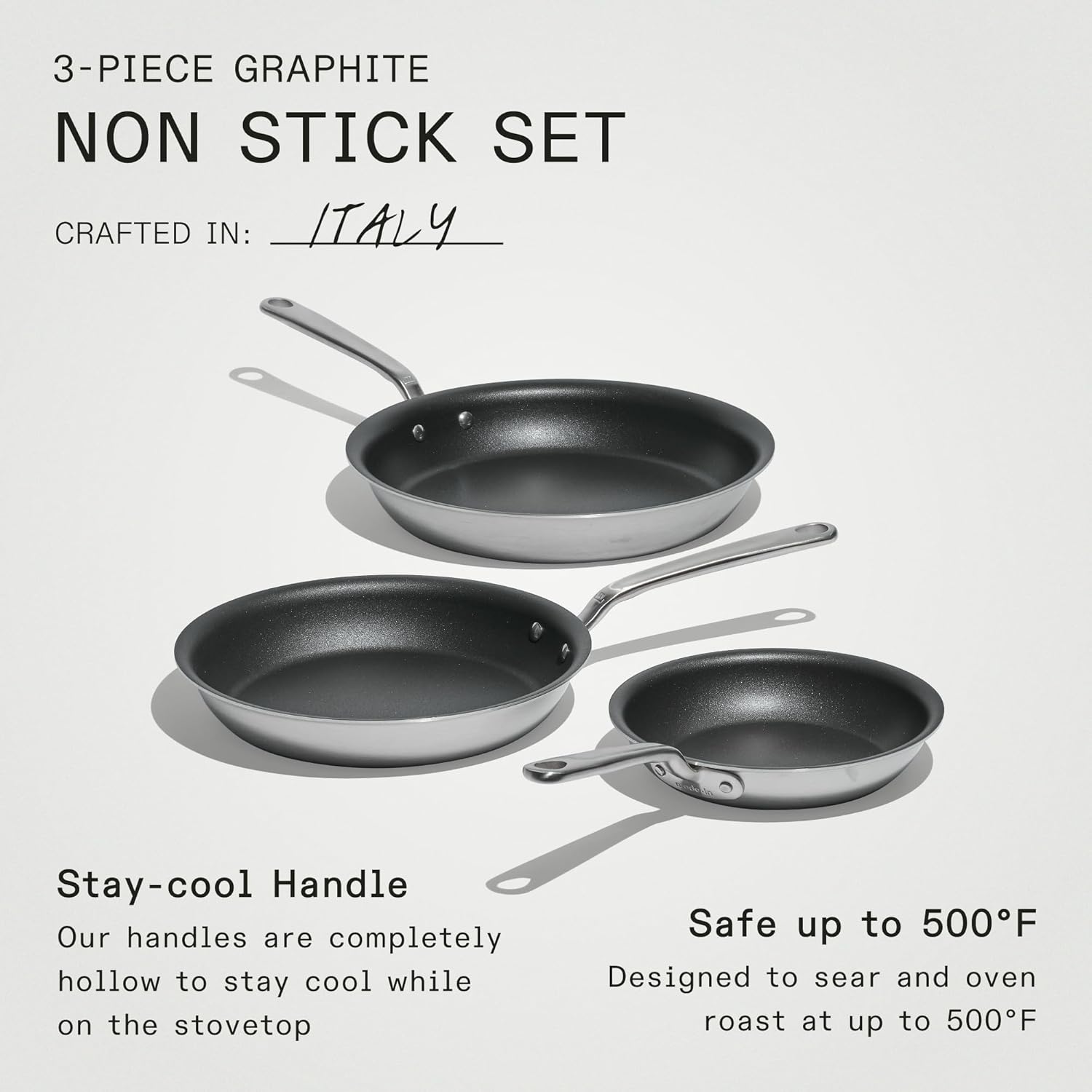 Made In Cookware - ProCoat Non Stick 3 Piece Frying Pan Set (Includes 8",10",12") - 5 Ply Stainless Clad - Professional Cookware - Crafted in Italy - Induction Compatible - (Graphite)