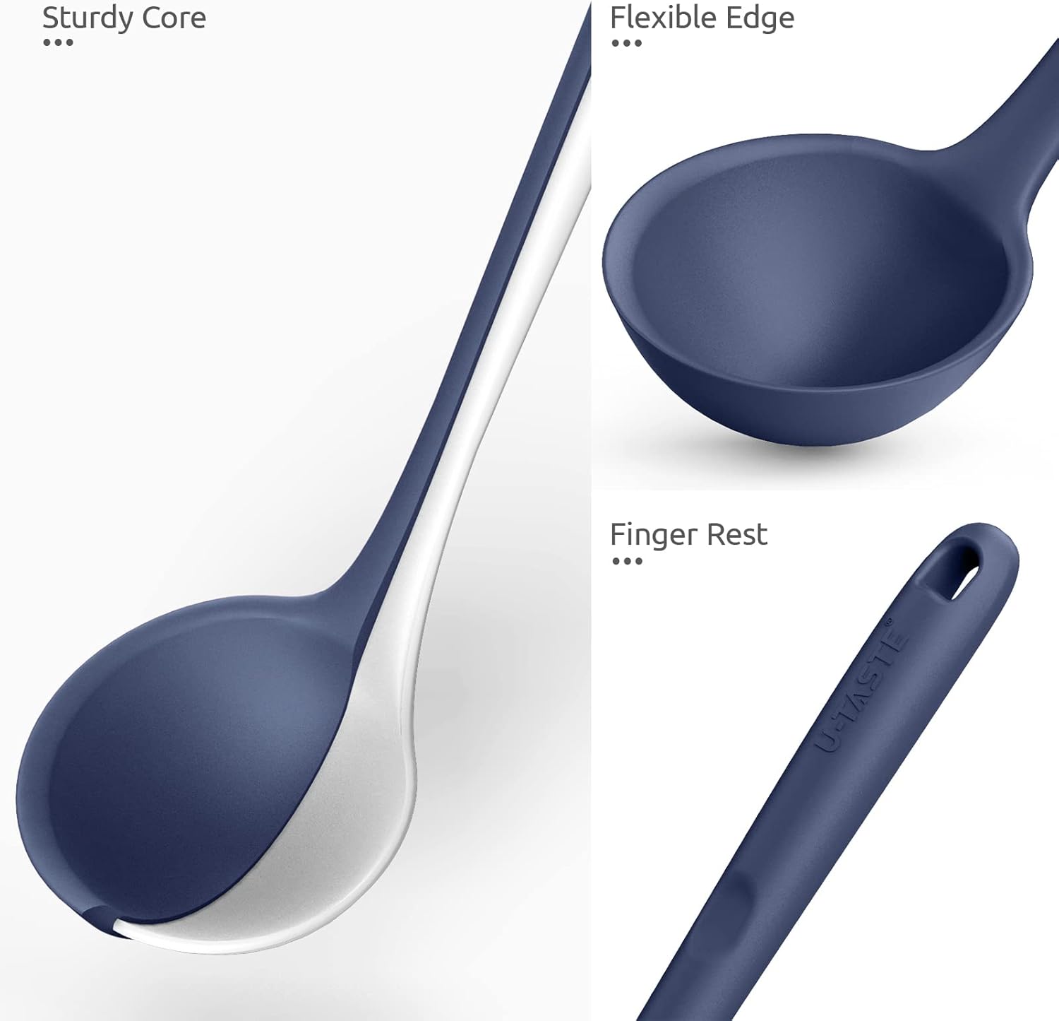 13 inch Silicone Soup Ladle: U-Taste 600ºF Heat Resistant 4 oz Large Non-stick Seamless Rubber Kitchen Deep Serving Spoon with Non Slip Long Handle for Cooking Sauce Stews Gravy (Midnight Blue)