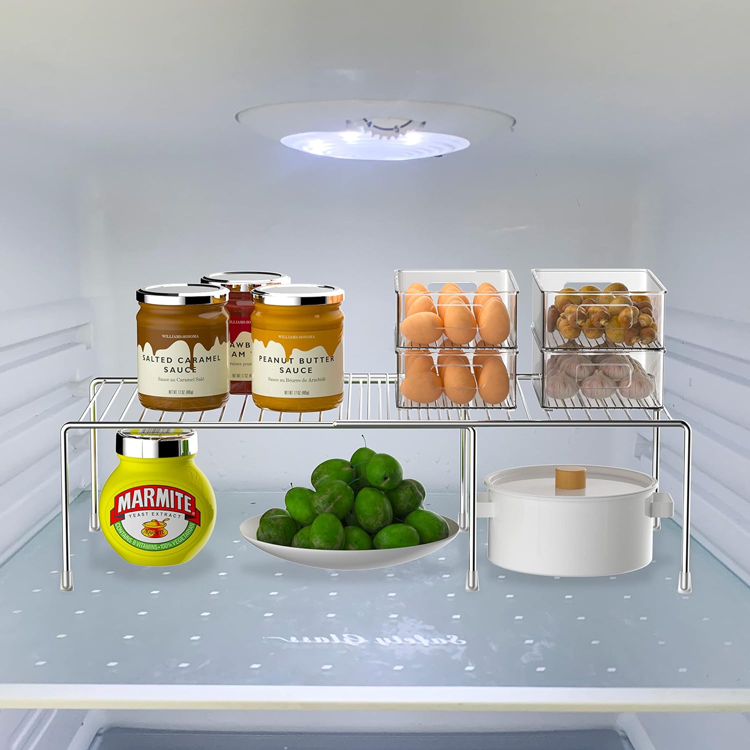 Redrubbit Cabinet Storage Shelf Rack, Expandable Metal Rustproof Kitchen Counter and Cabinet Shelf, Storage Rack Organizer Space Saver for Kitchen, Fridge, Cabinet, Bathroom, Chrome