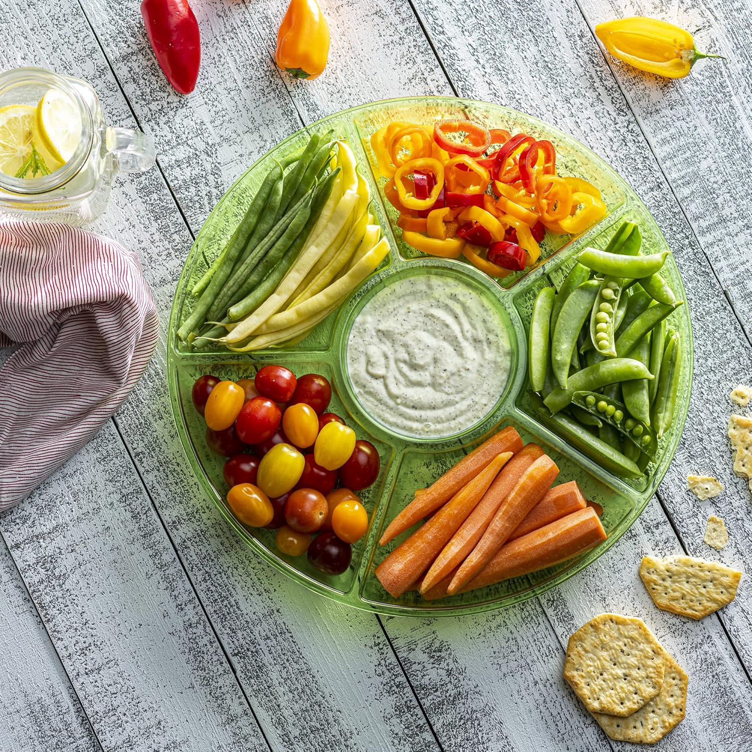 Plasticpro 6 Sectional Round Plastic Serving Tray/Platter (4, Green)