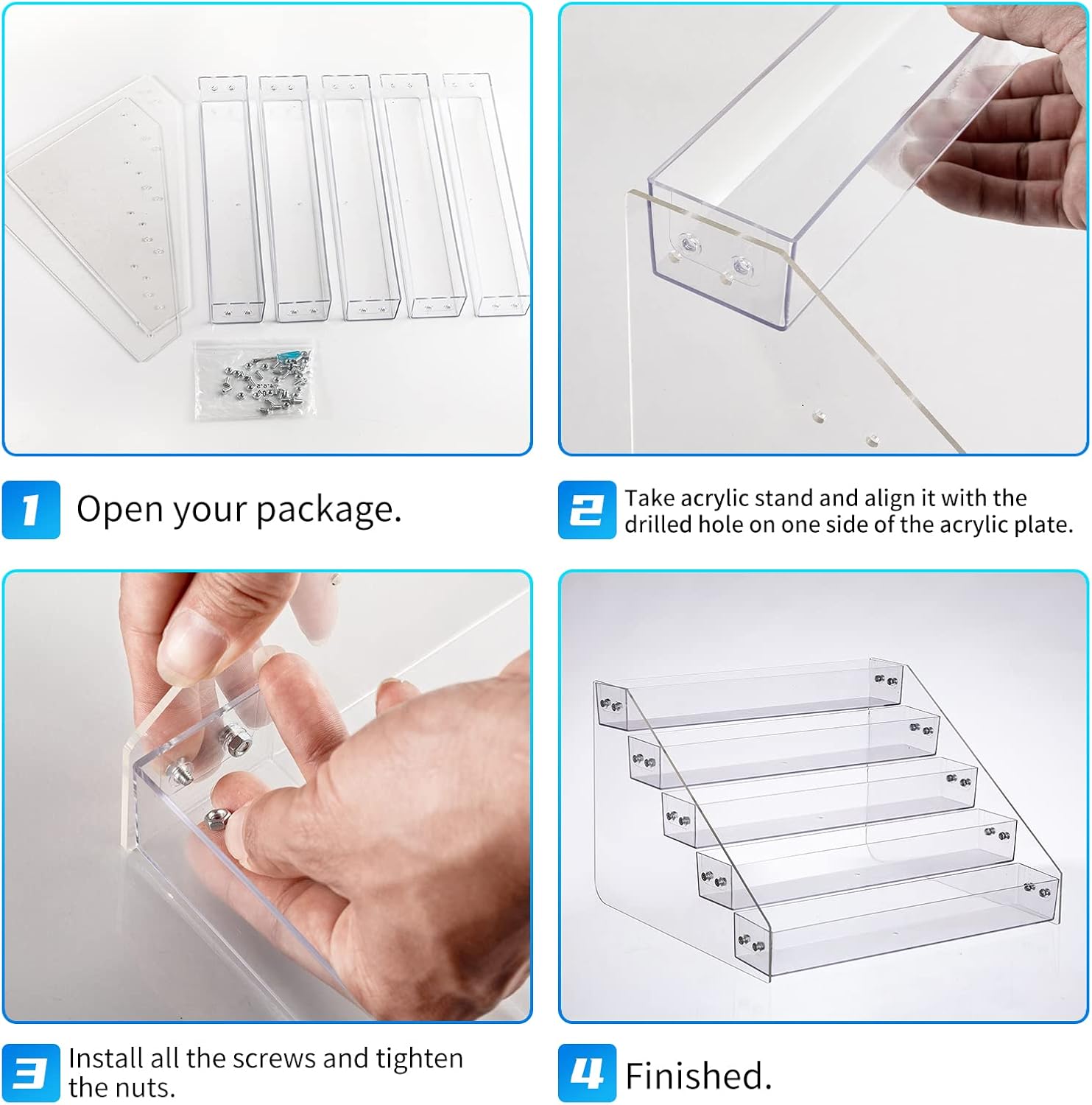 - 【Safe and Durable】- The tiered spice rack is made of acrylic plate, which contains no BPA, so you can use it safely in your kitchen. Acrylic plate has the characteristics of high hardness at the same time, can be placed many bottles of seasoning for many years without deformation.