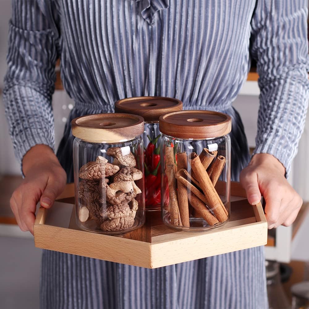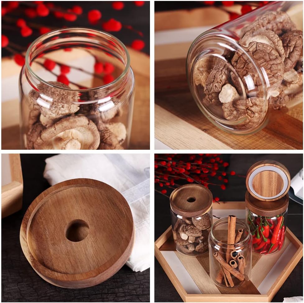 - 【MATERIAL】: This glass canister is made from clear high-grade borosilicate glass + natural acacia wood lids. Environmental friendly ,non-toxic,freezable,resistant to corrosion and high temperature.