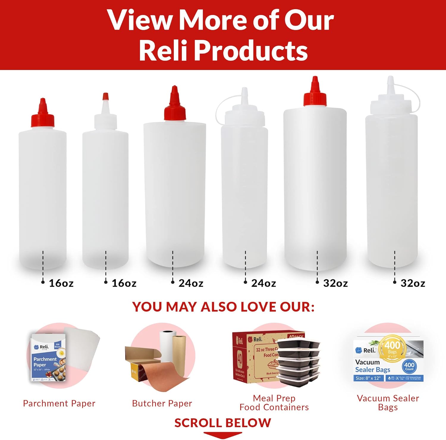 Reli. Plastic Squeeze Bottles, 32 oz. | 4 Pack | Condiment Squeeze Bottles for Sauces | Clear w/Red Twist Cap | 32 Ounce Hot Sauce, Ketchup | Condiments, Olive Oil, Liquids
