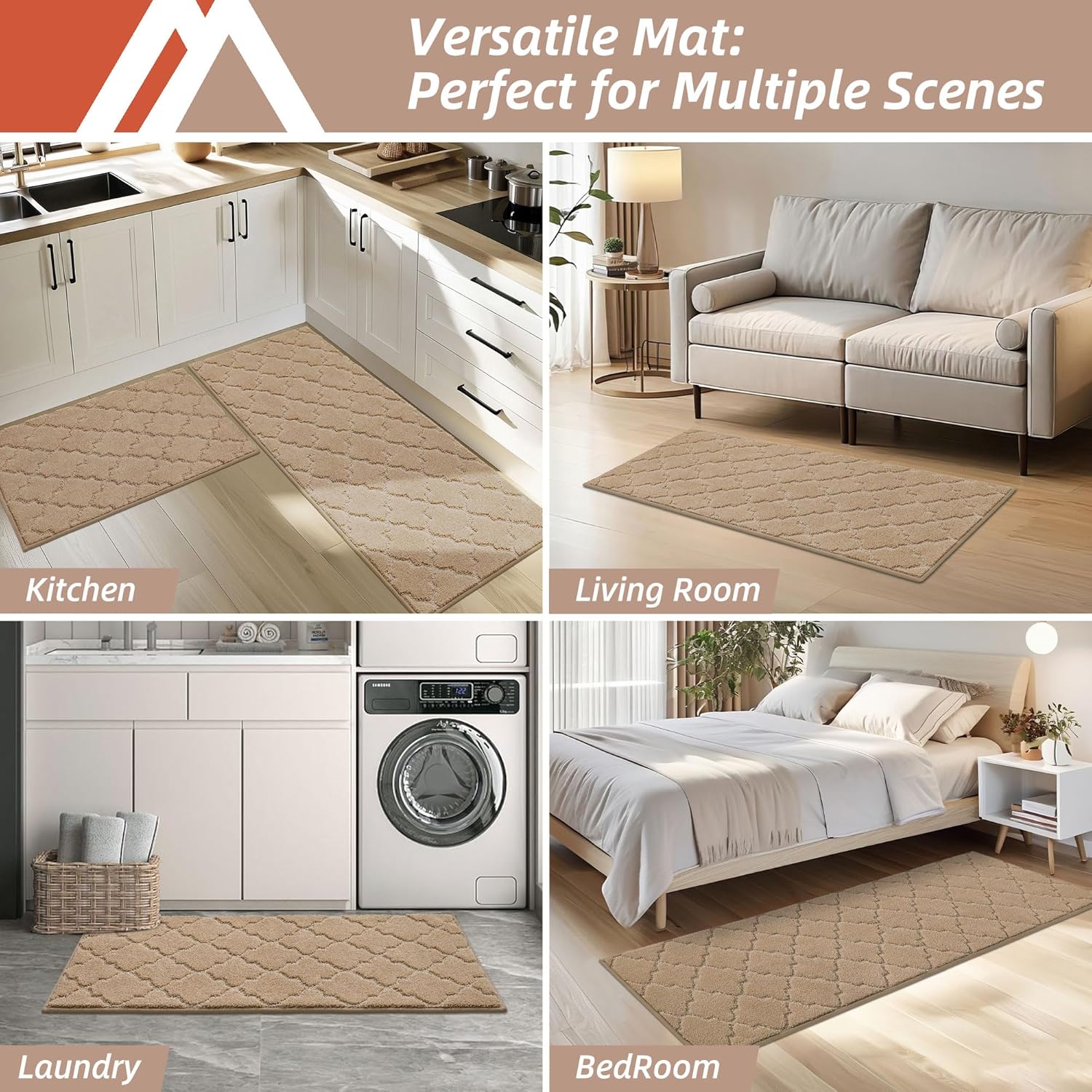- Soft Rugs for Kitchen: COSY HOMEER Accent Rugs are most popular in kitchens. Brighten it up by placing one at the foot of the sink. Absorb splashed water & oil while cooking.